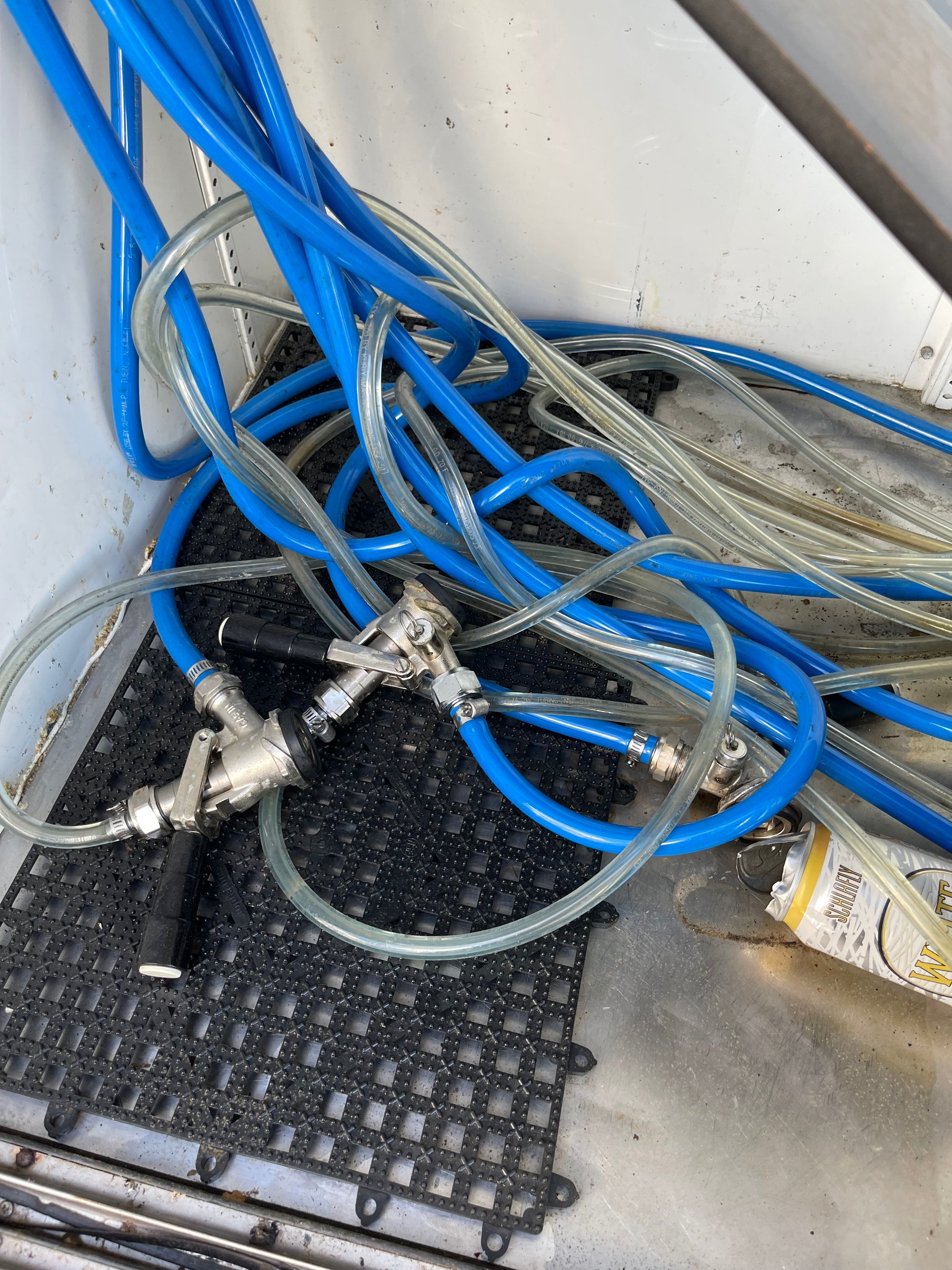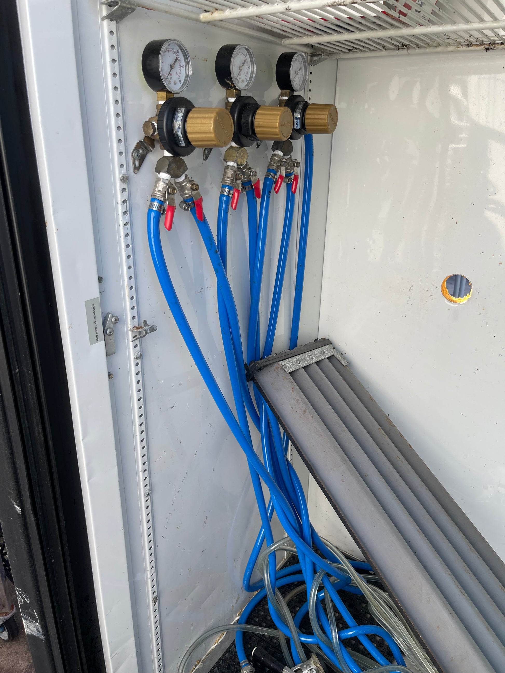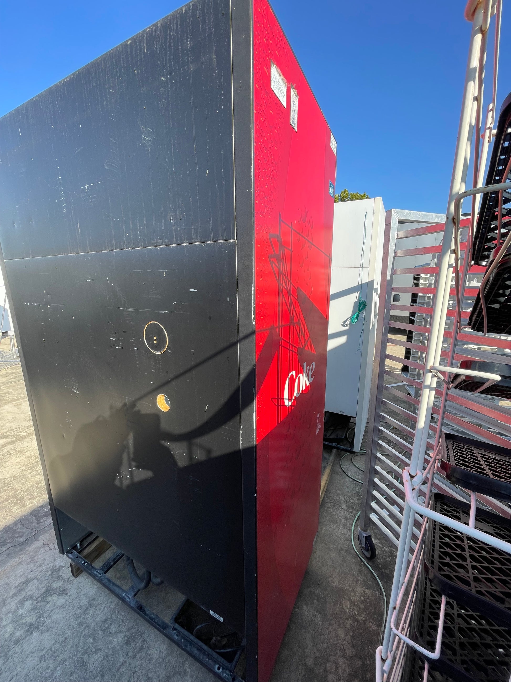 This refrigerator is used and is being sold as is. This has been converted to hold kegs and was once hooked up to taps on a bar. There is a hole cut in the back where the lines ran out to the bar. Only what is pictured is included. This could be used as is or turned back in to a drink cooler. This is a sliding door model.