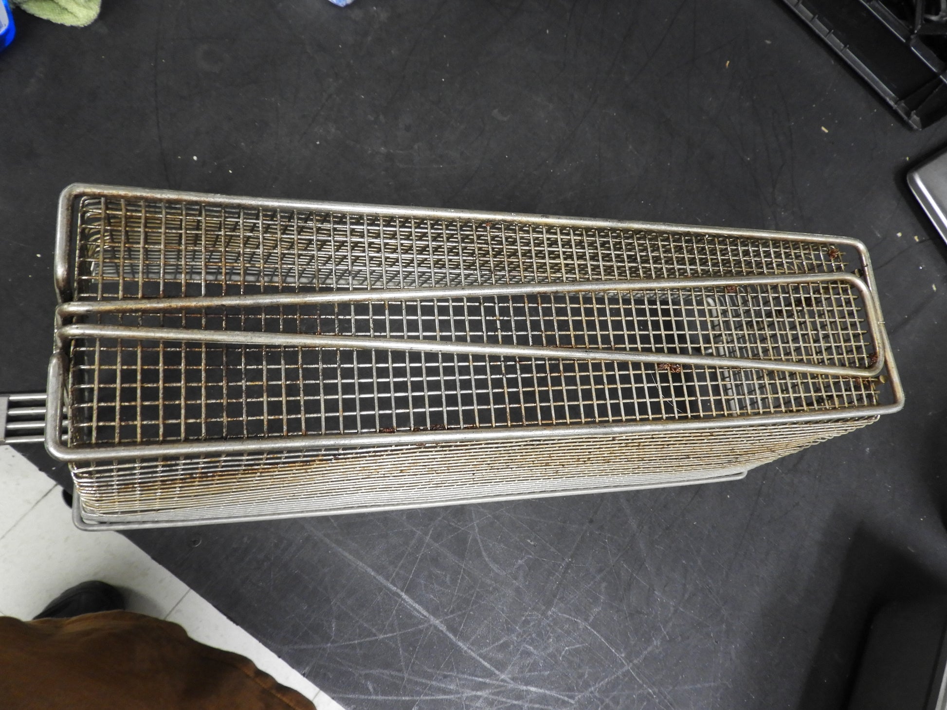 This basket is used but in good useable condition. There are the normal signs of use. This is a heavy duty fry basket The total length with handle is 28.5"