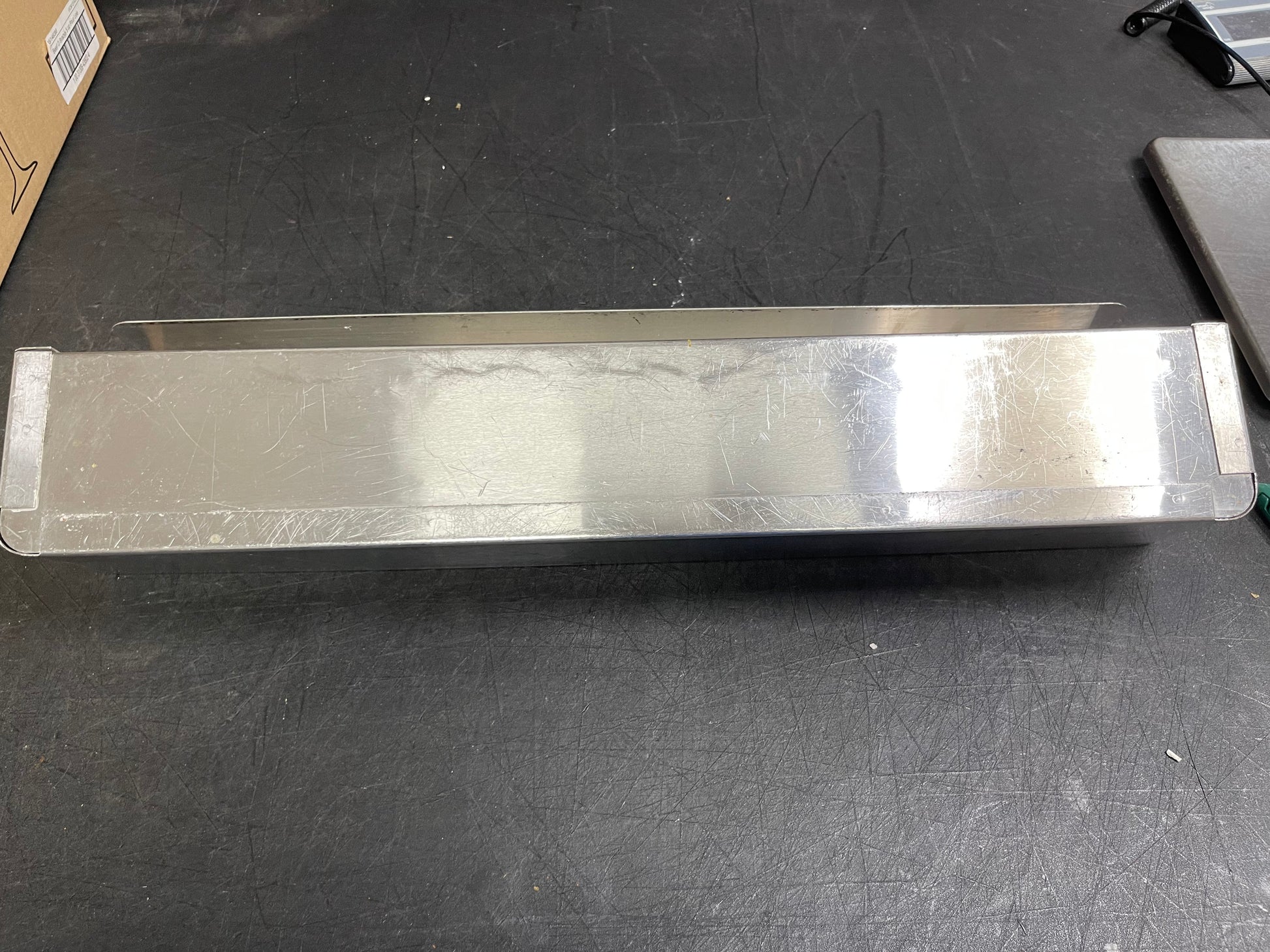 This speed rail is used and does have some scuffs and scratches on it from use, The compartment dimensions are 24"x4"x35". The total dimensions are 24"x5.5"x6". This is a well make item and very sturdy.
