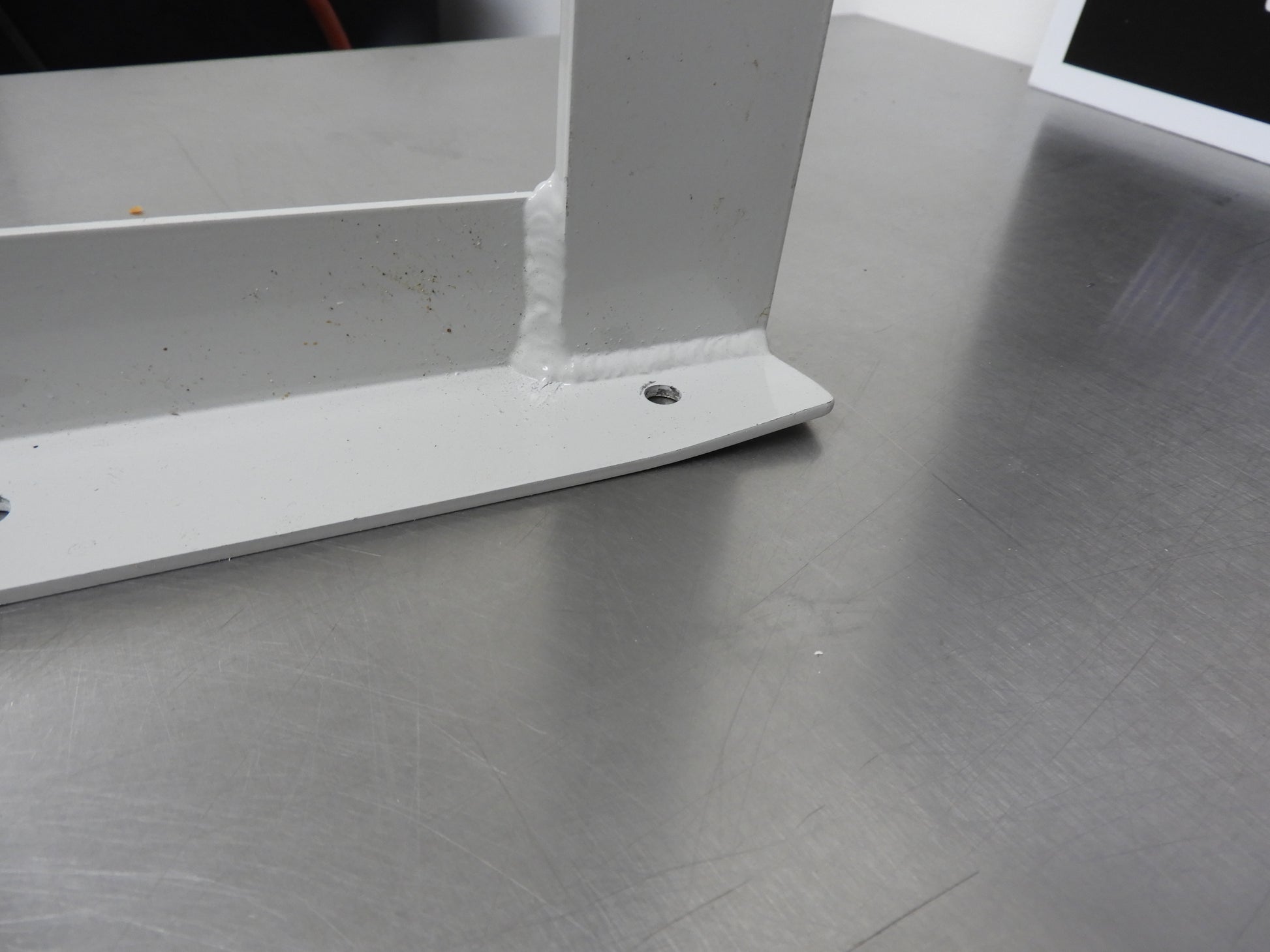This pan hanger is used but in good usable condition. There is a small bend where it meets the wall. There may be some minor scuffs or scratches on it from normal use. This is a heavy duty pan hanger. It is made with steel and is very solid.