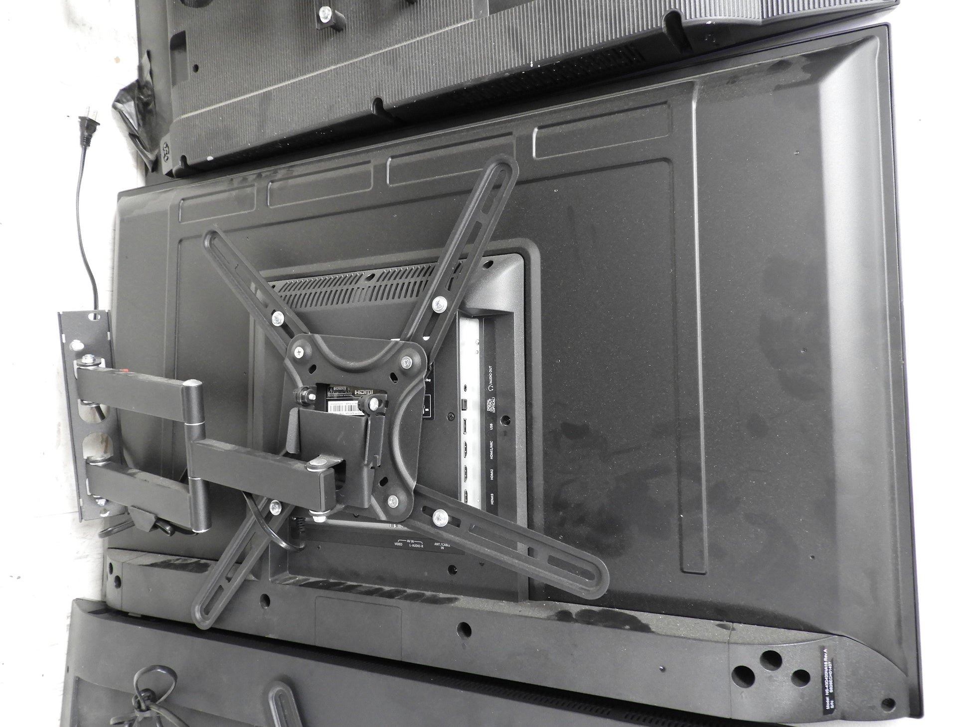 This tv is used, but has been inspected and tested. There is no remote control included. This does come with a very nice wall mount. There may be some scuffs from normal use,