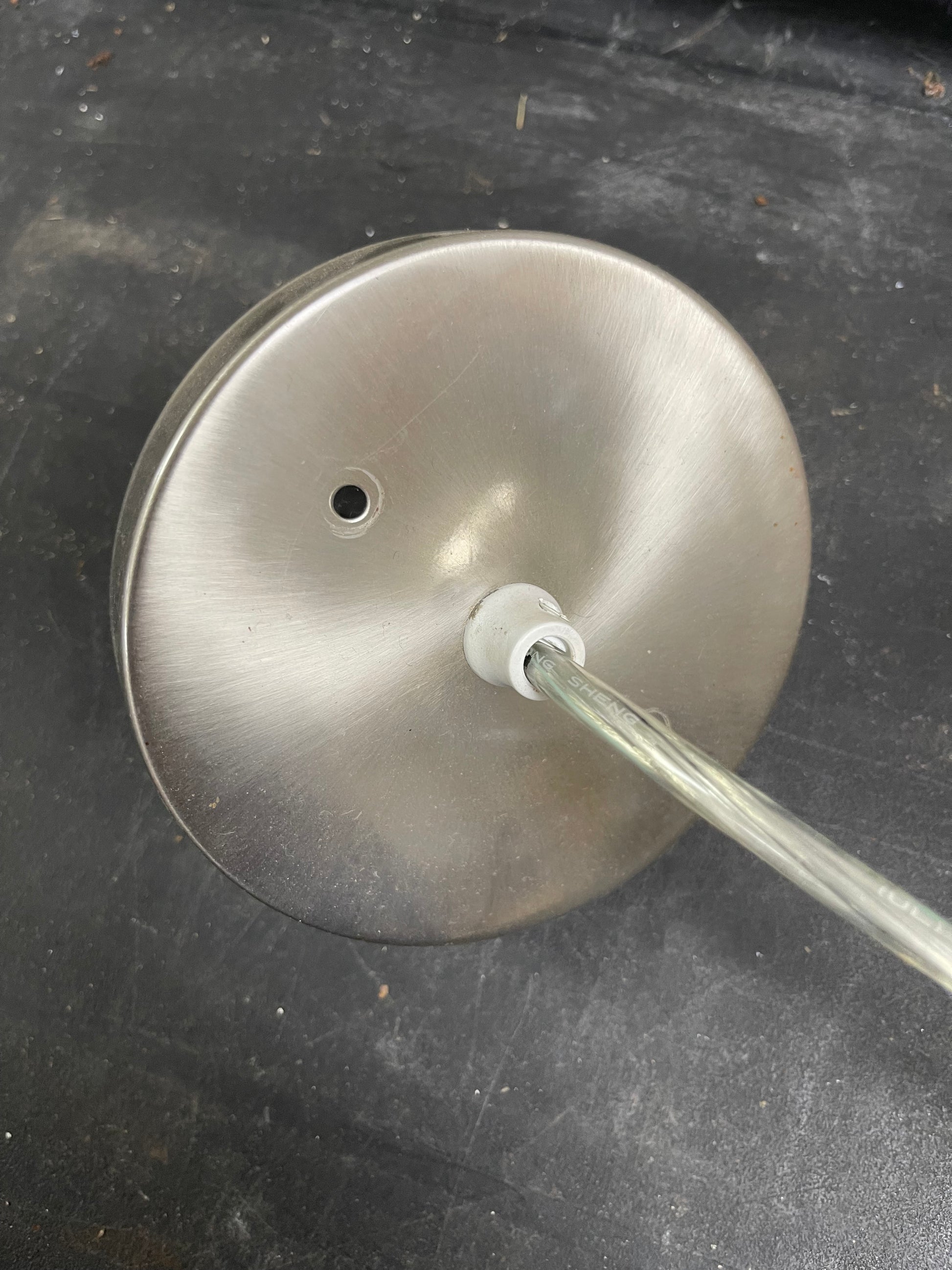 This pendant light is used but is in great condition. From the ceiling to the bottom of the light fixture is 34". Due to this item being fragile it will be pick up only at our location.