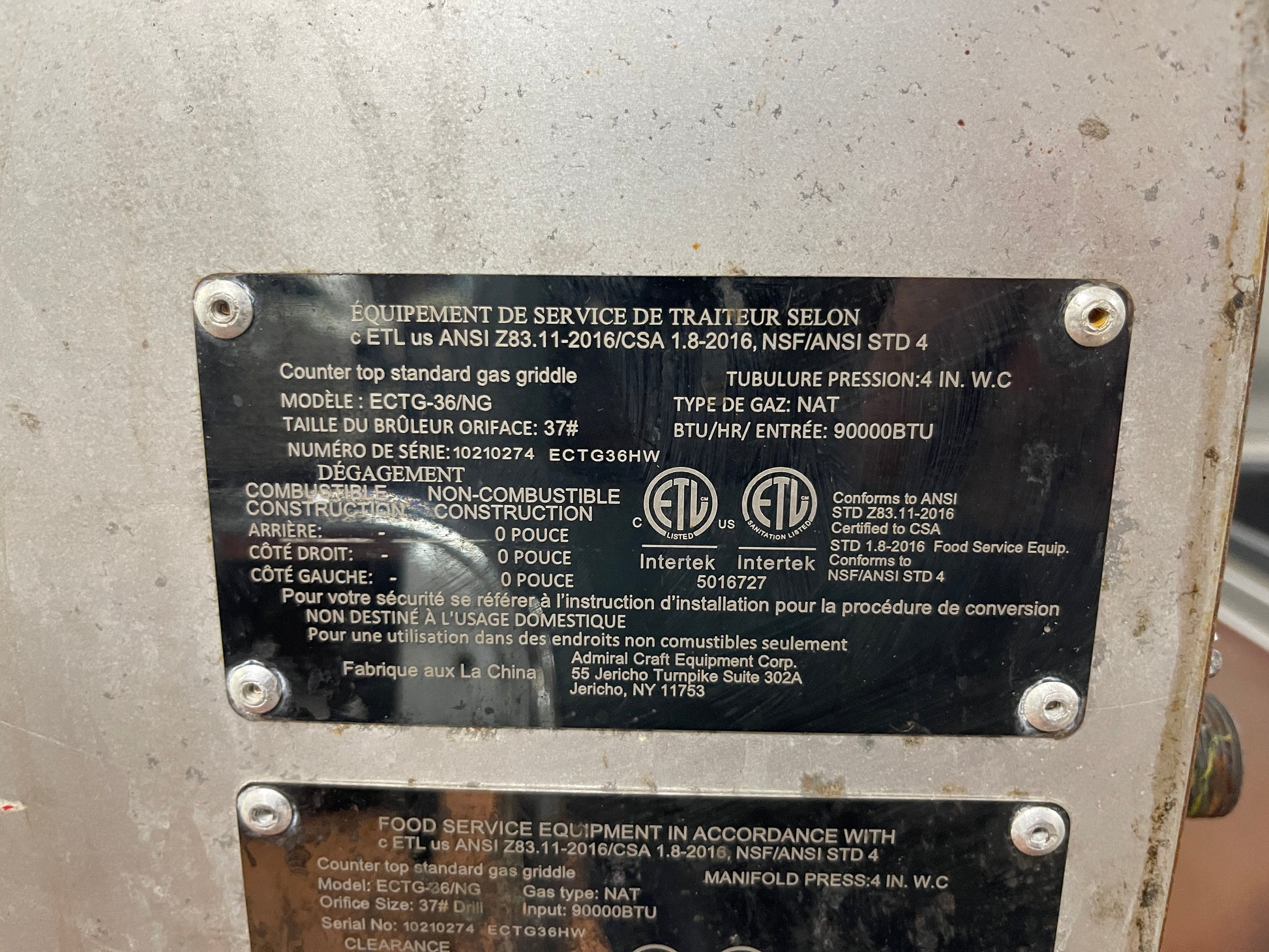 Used Adcraft 36" ECTG-36 NG Stainless Countertop Griddle 90,000 BTU
