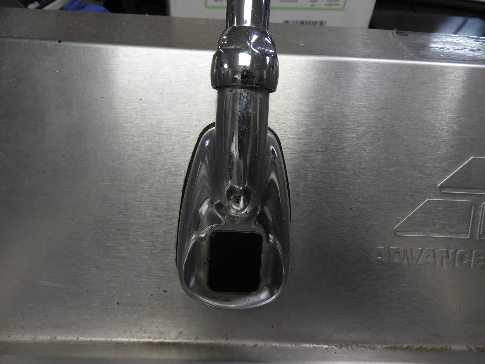 This sink is used and does have some scuffs and scratches on it from normal use. This is a nice small touchless sink. This sink would be a great addition to a food truck or concession trailer.
