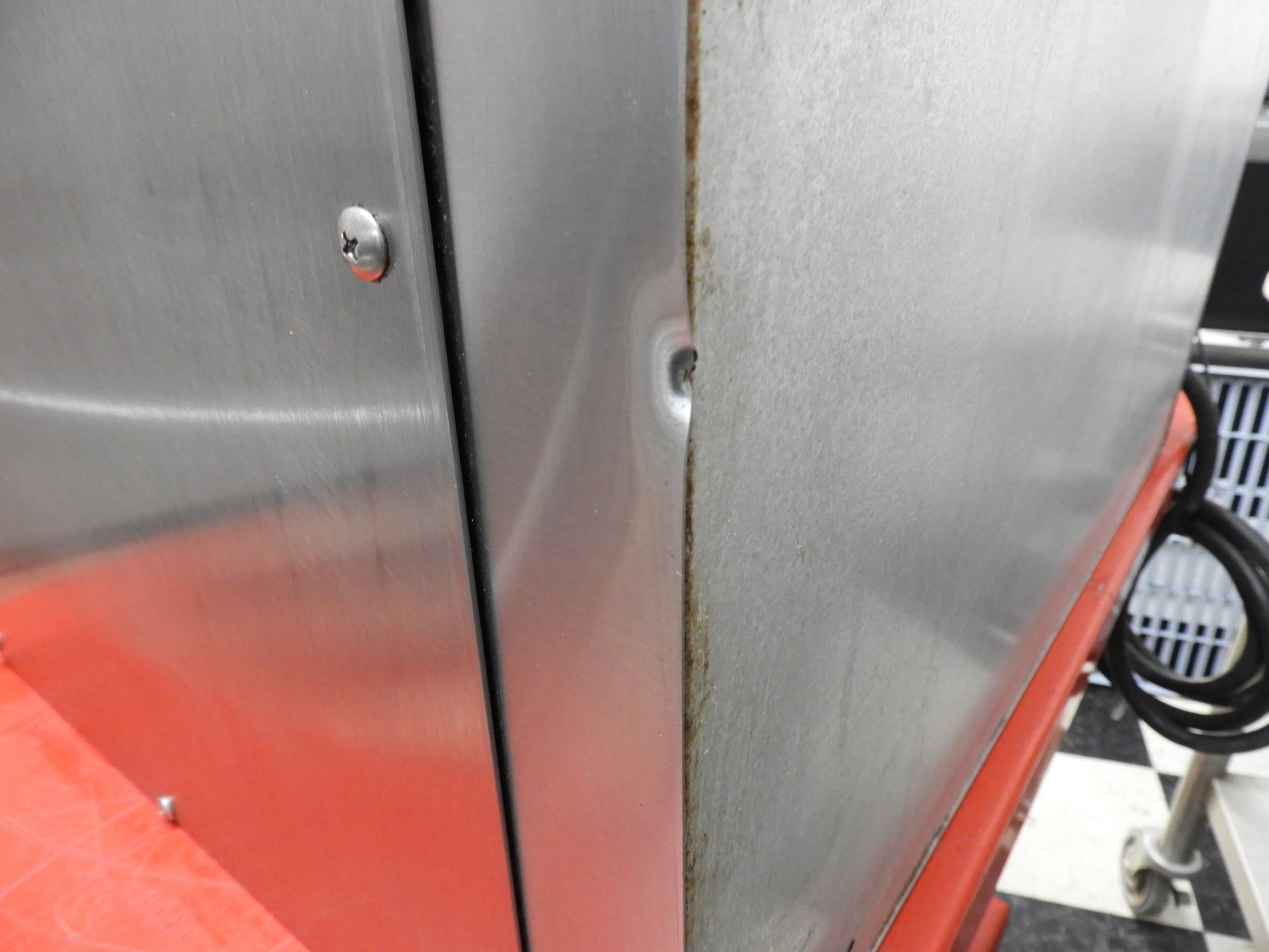 This cheese melter is used but has been cleaned and tested. There may be minor scuffs or scratches on it from normal use. There is one small dent on the back right of the machine (see pictures).