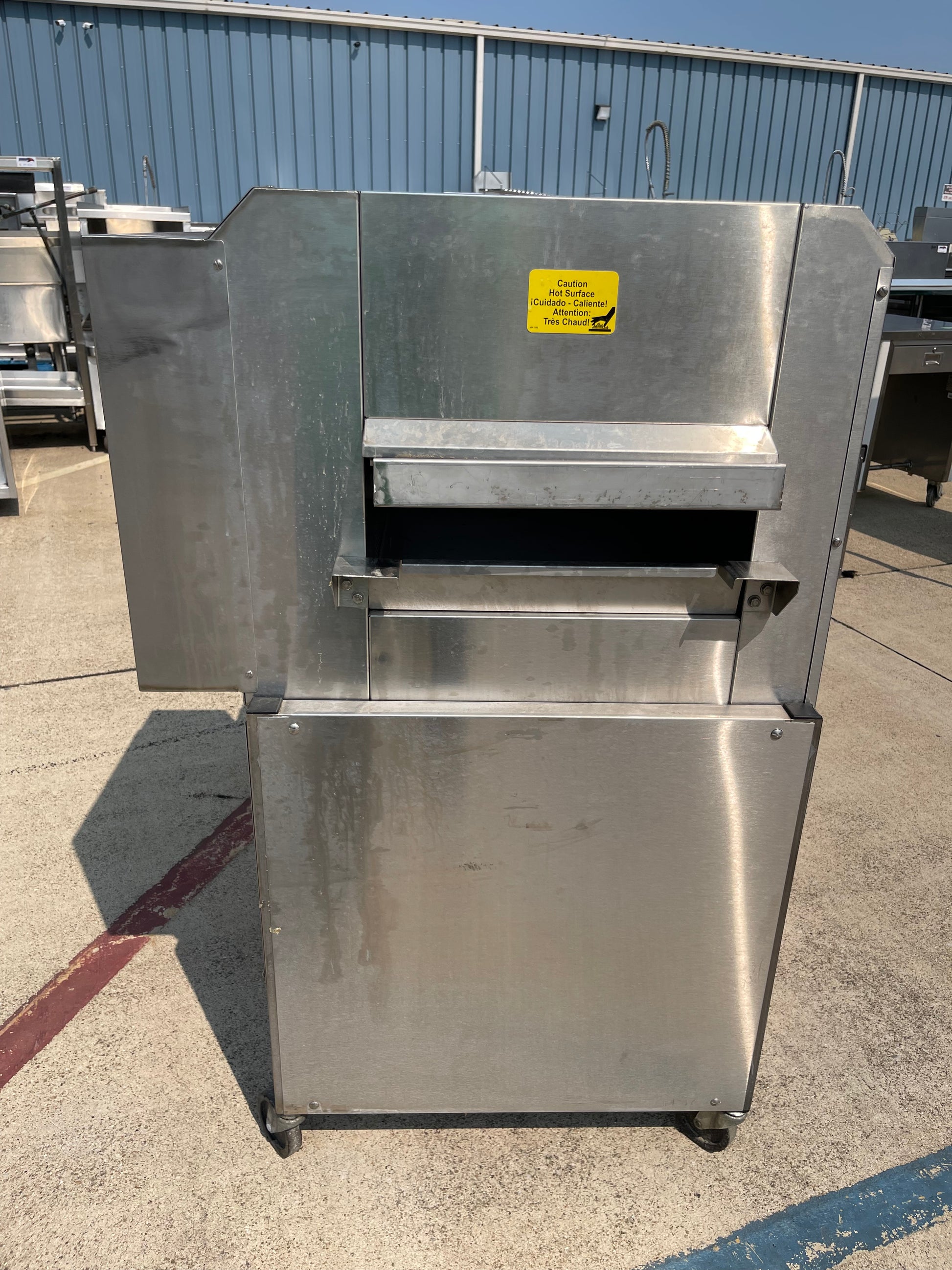 This machine is used but is in great condition. There are some scuffs and scratches from use. The dimensions are 84"W x 34"D x 54"H and weighs 295lbs. We are not familiar with the operation of this machine so we have not tested it nor do we know if it is complete. Which is why we are selling them at a small fraction of their value.