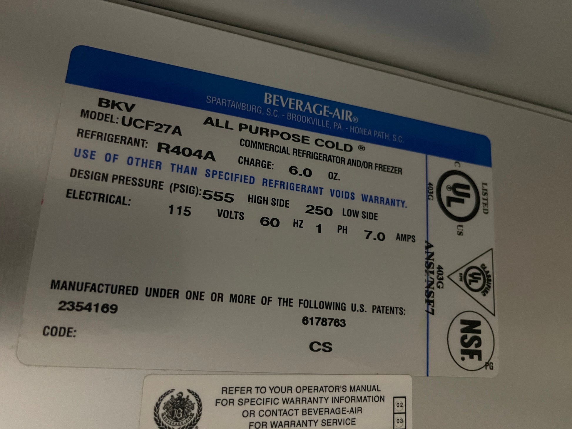 Used 27" Beverage-Air UCF27 Commercial Undercounter Freezer 120V