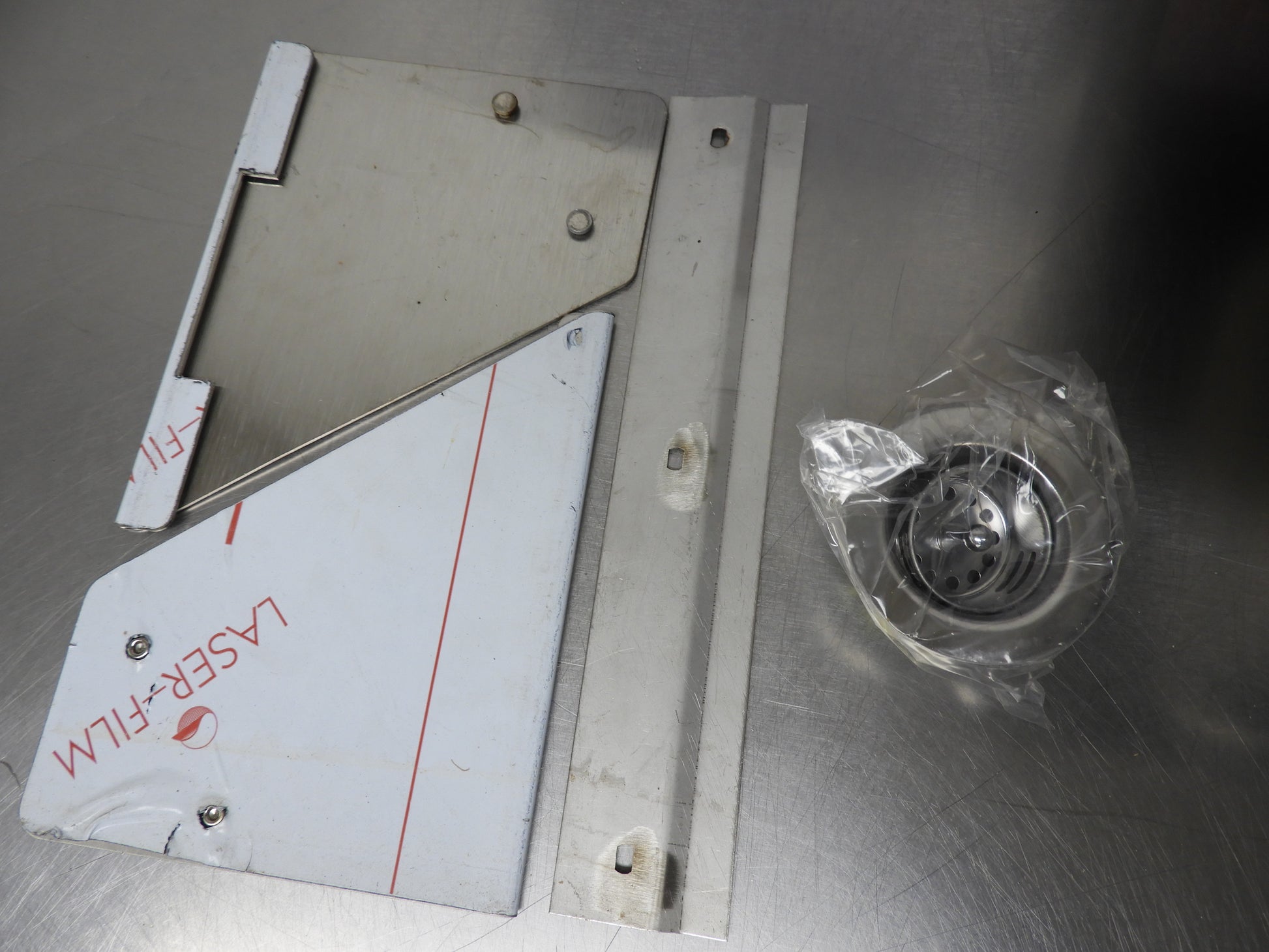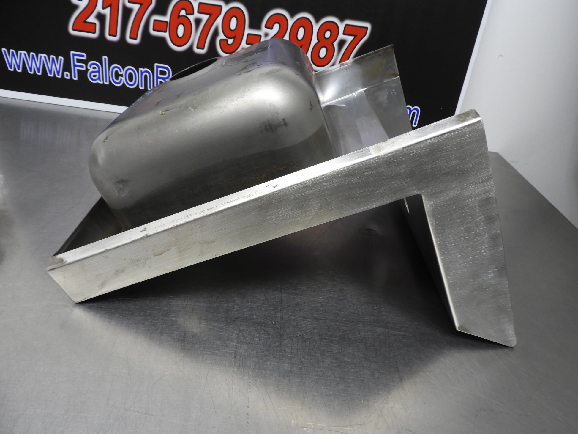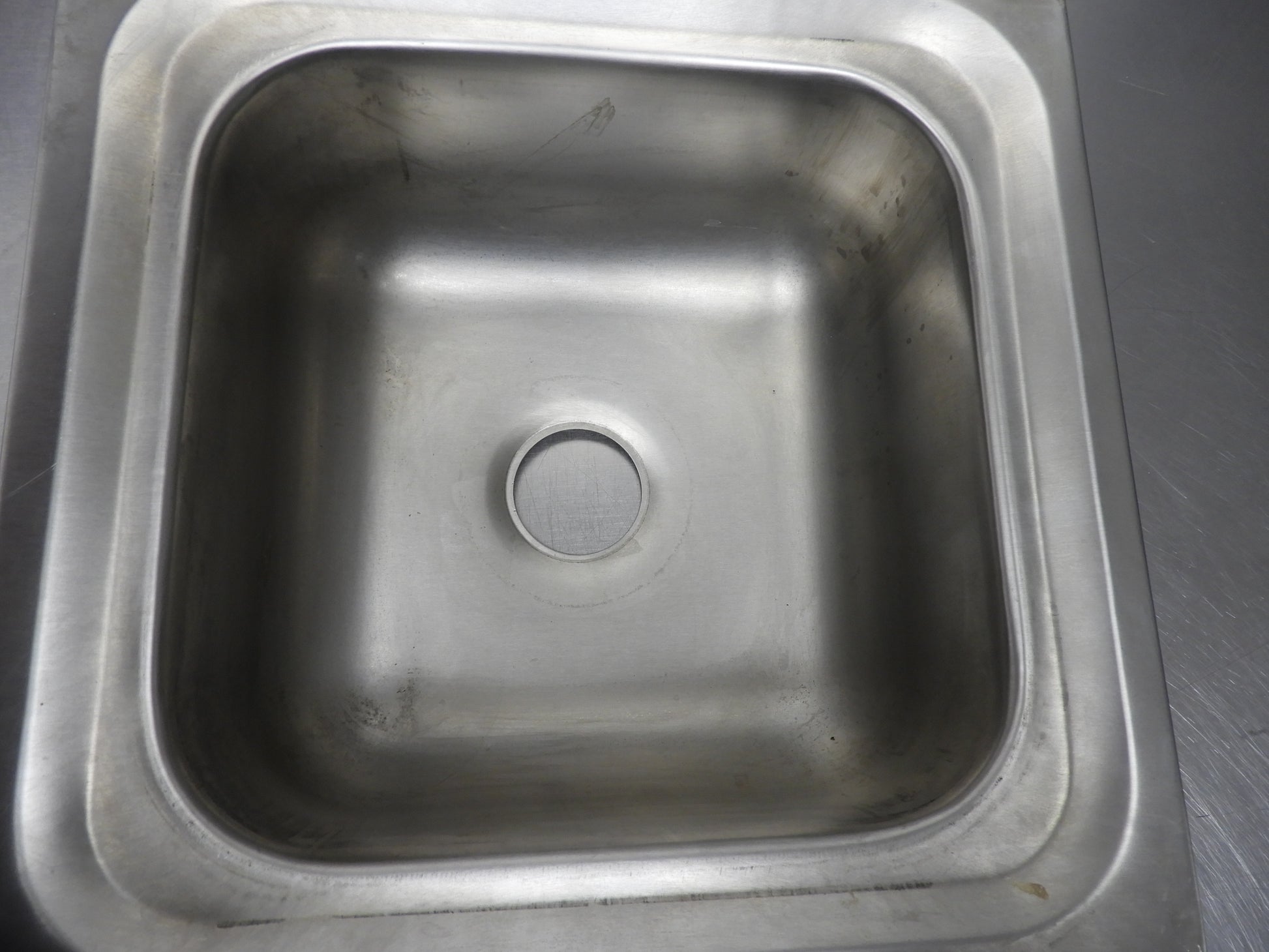 This is a new stainless steel sink with a touchless faucet. This is a great space saving sink that would be perfect for a food truck or concession stand. This sink is 9"x9"x5" deep.