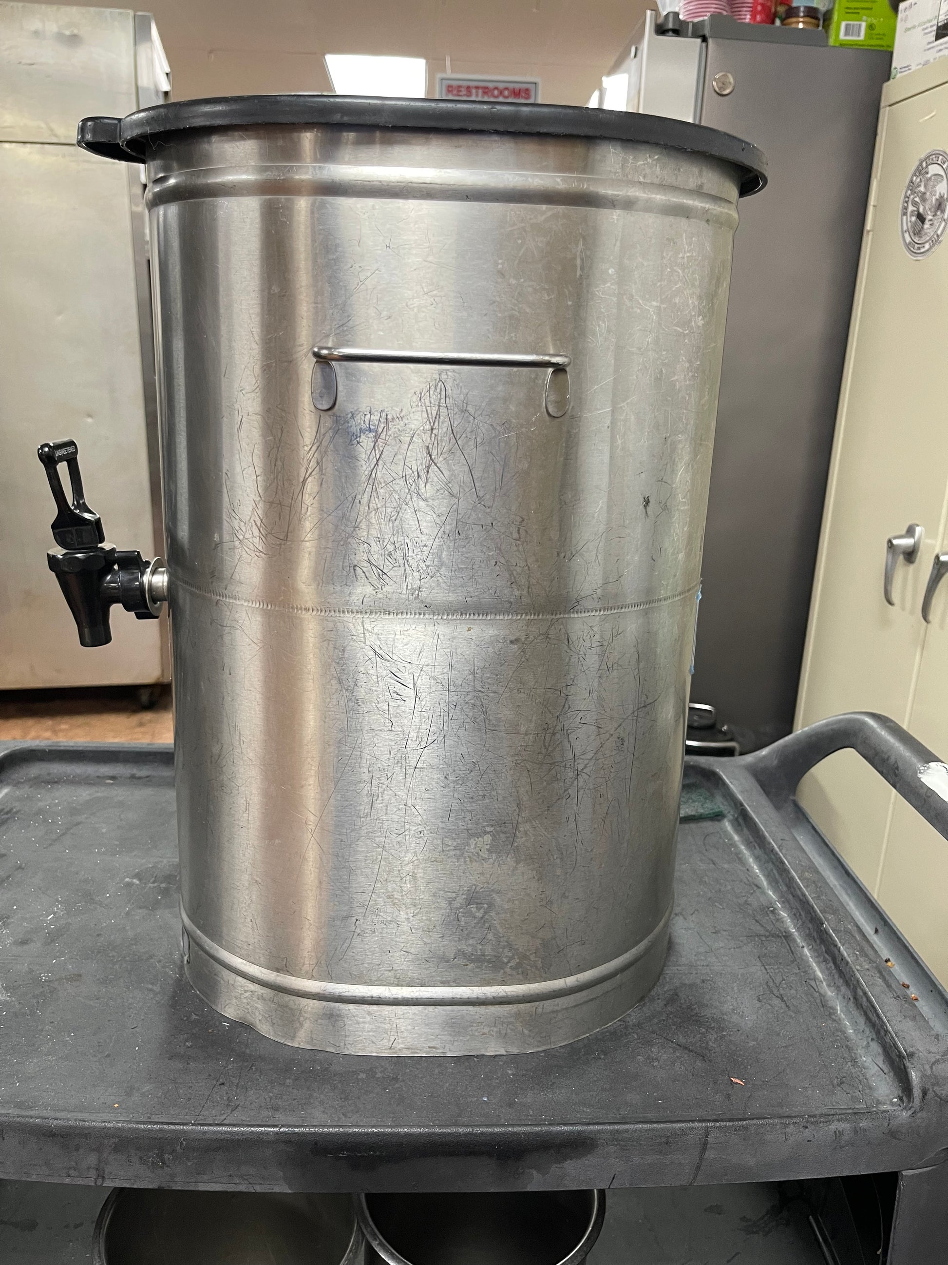 This tea dispenser is used but is in good usable condition. There are some scuffs and scratches on it from use.
