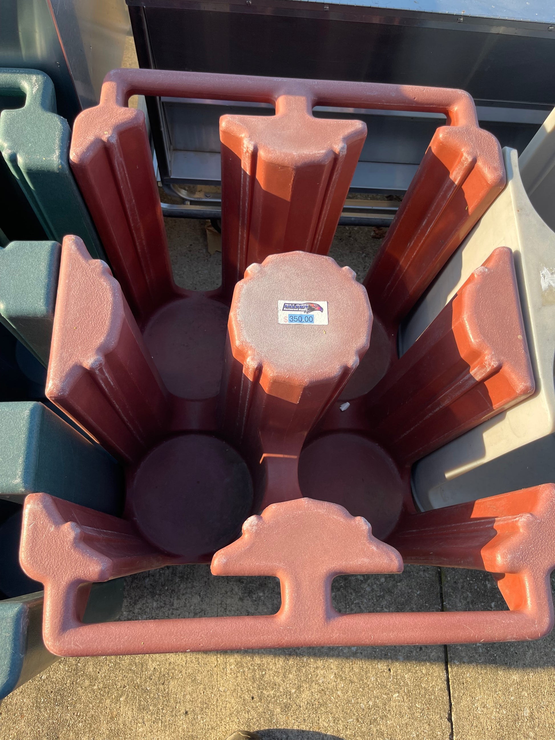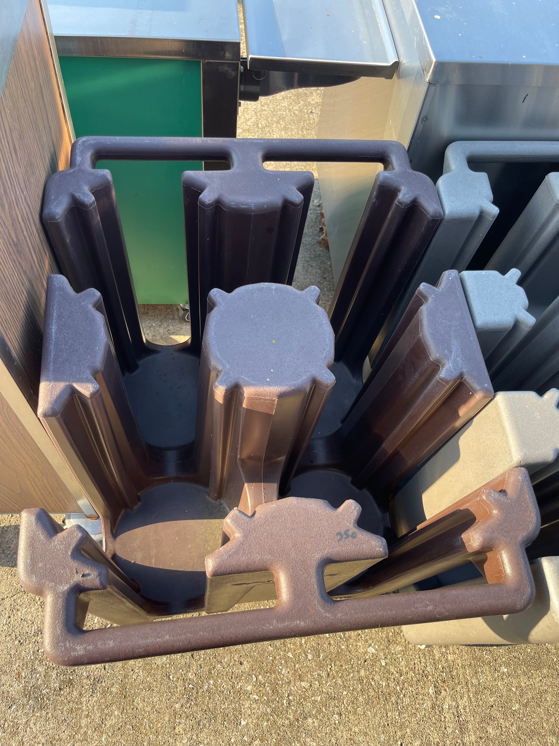 This caddy is capable of holding four stacks of plates from 7 1/8" to 8 1/4" in diameter within its impact resistant and shock absorbent frame. Each stack can hold approximately 45-60 plates per column.