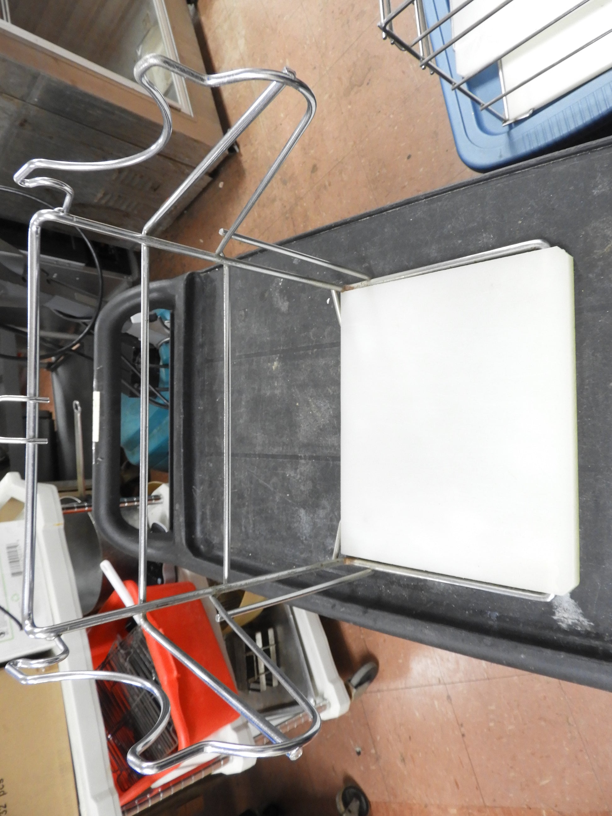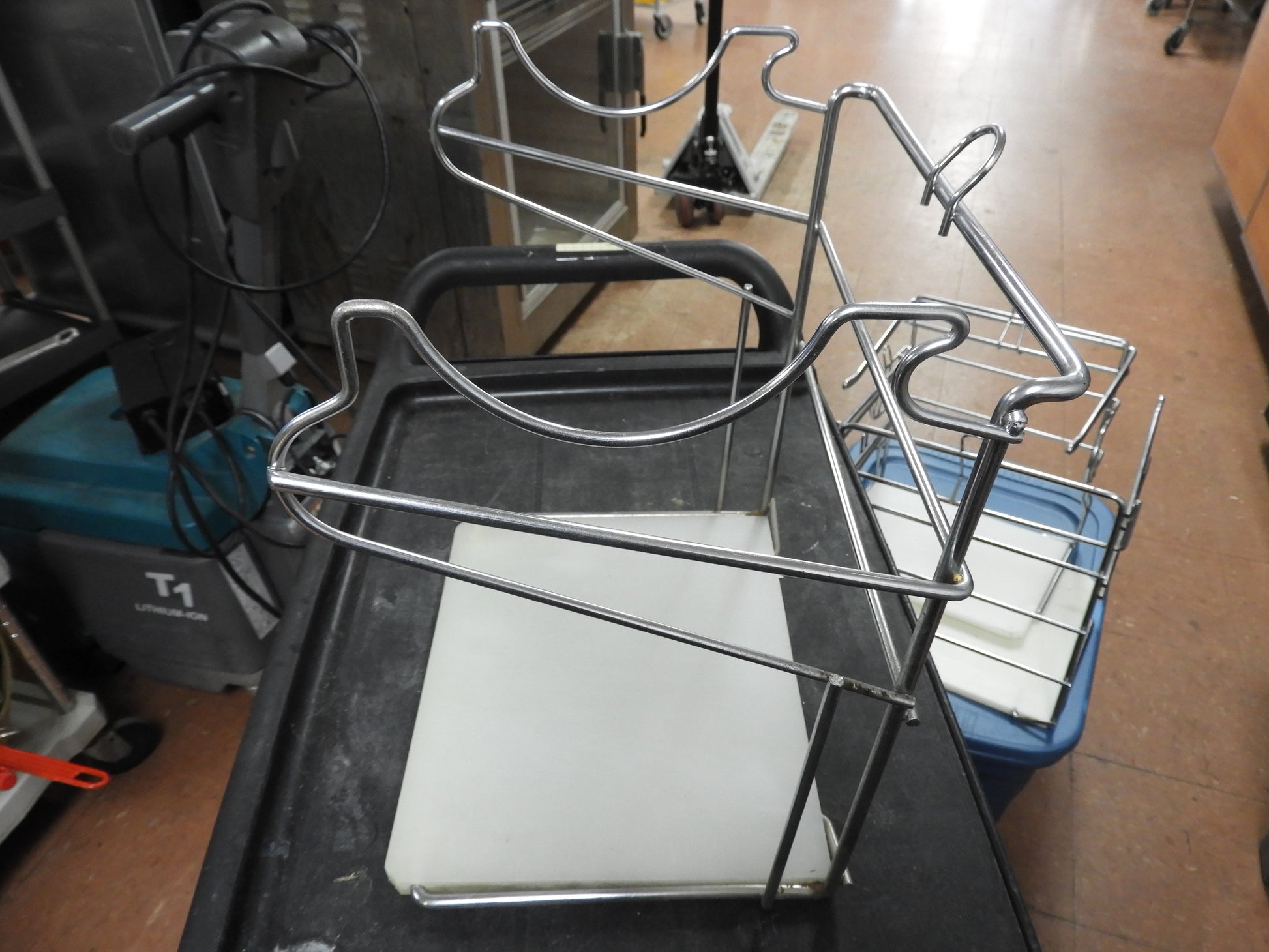 This bag rack is used and does have some scuffs and scratches on it from use. This is still in good usable condition. This is a great item for keeping your bags organized and for making your bagging easier. We have three of these, all three are a little different in style. The one pictured may not be the one you receive. All three styles are pictured.