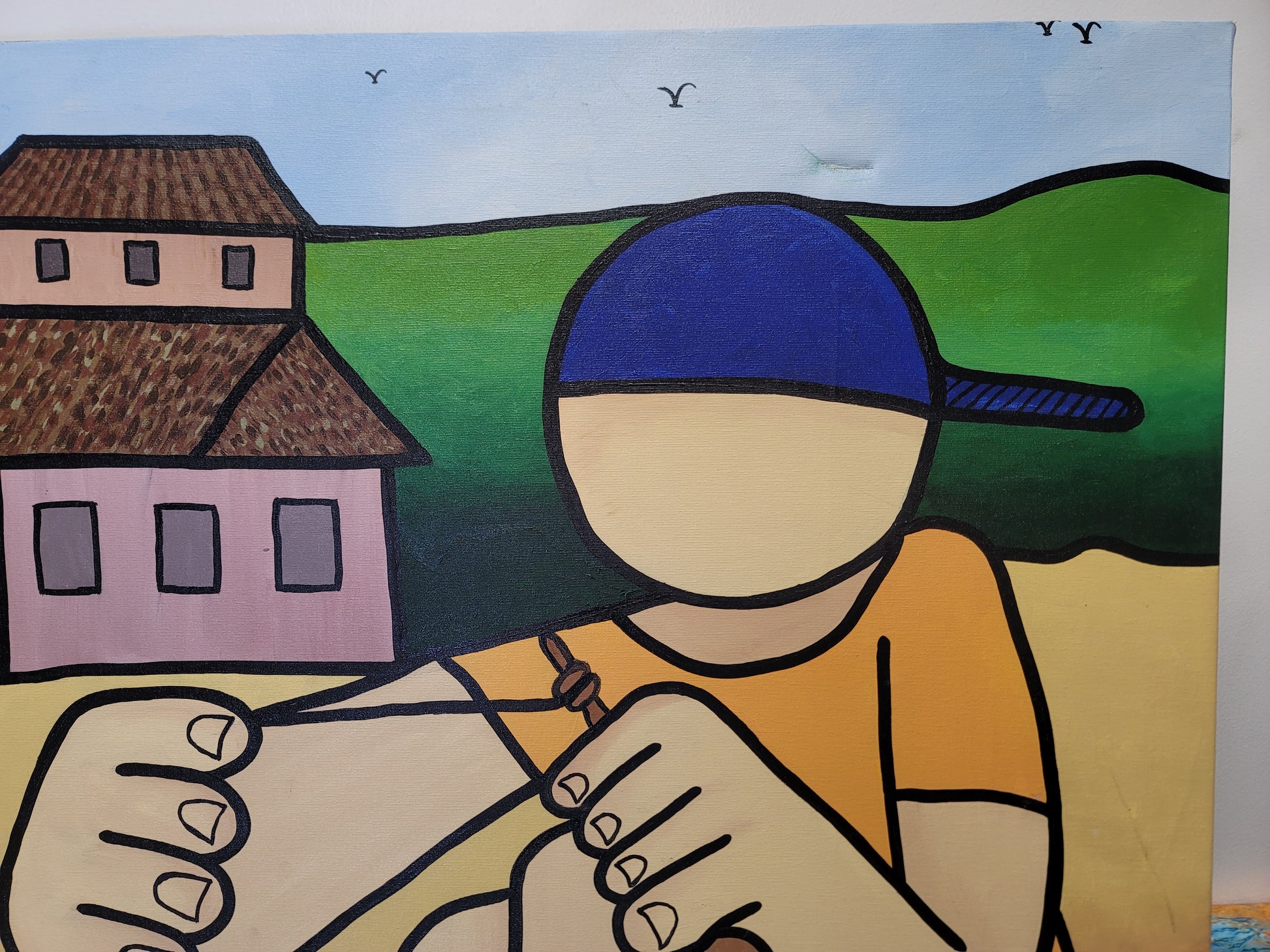 New Walmiru Original Faceless Painting on Canvas - Playing Bilboque 36" x 60"