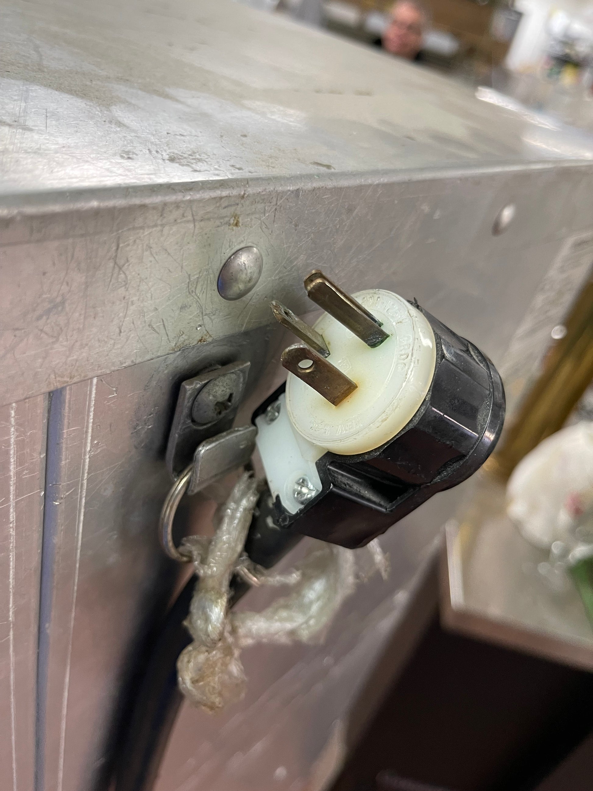 This Holding cabinet is used but has been cleaned and tested. There are some scuffs and scratches on it from use. This is missing the temp gauge at the bottom. Only what is pictured is included.