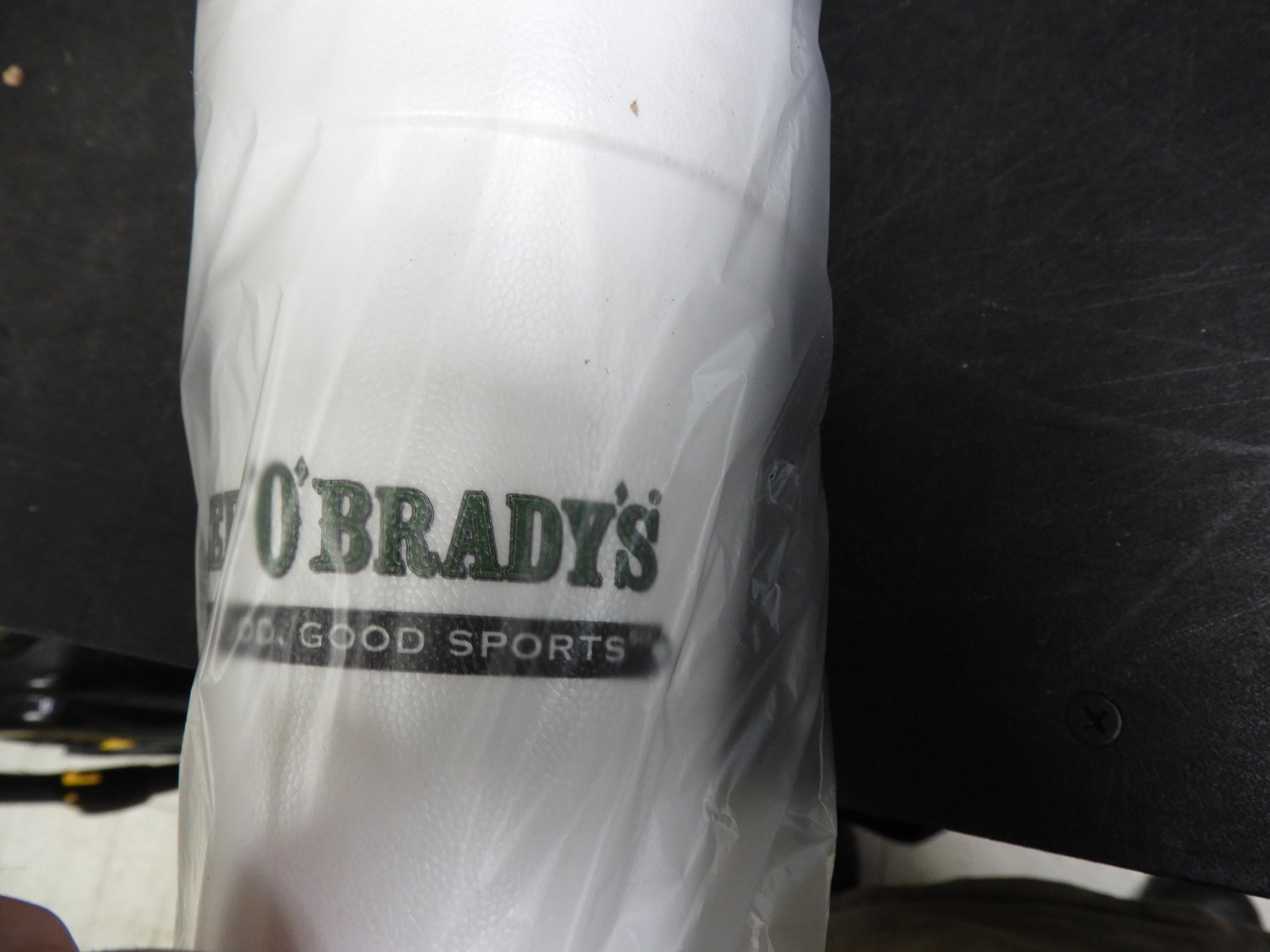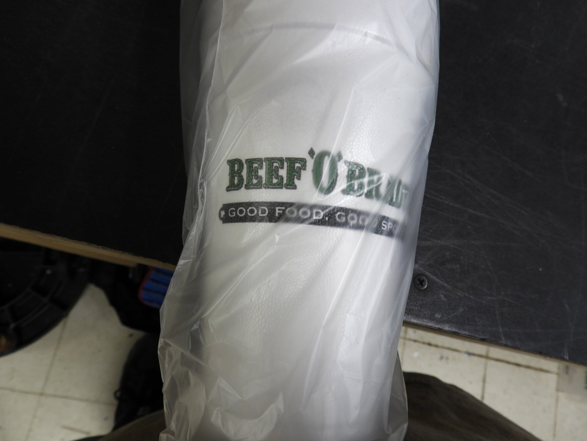 This is a new stack of 25 Foam cups. They are still in their original packaging. These cups have been customized with a Restaurants name/logo.