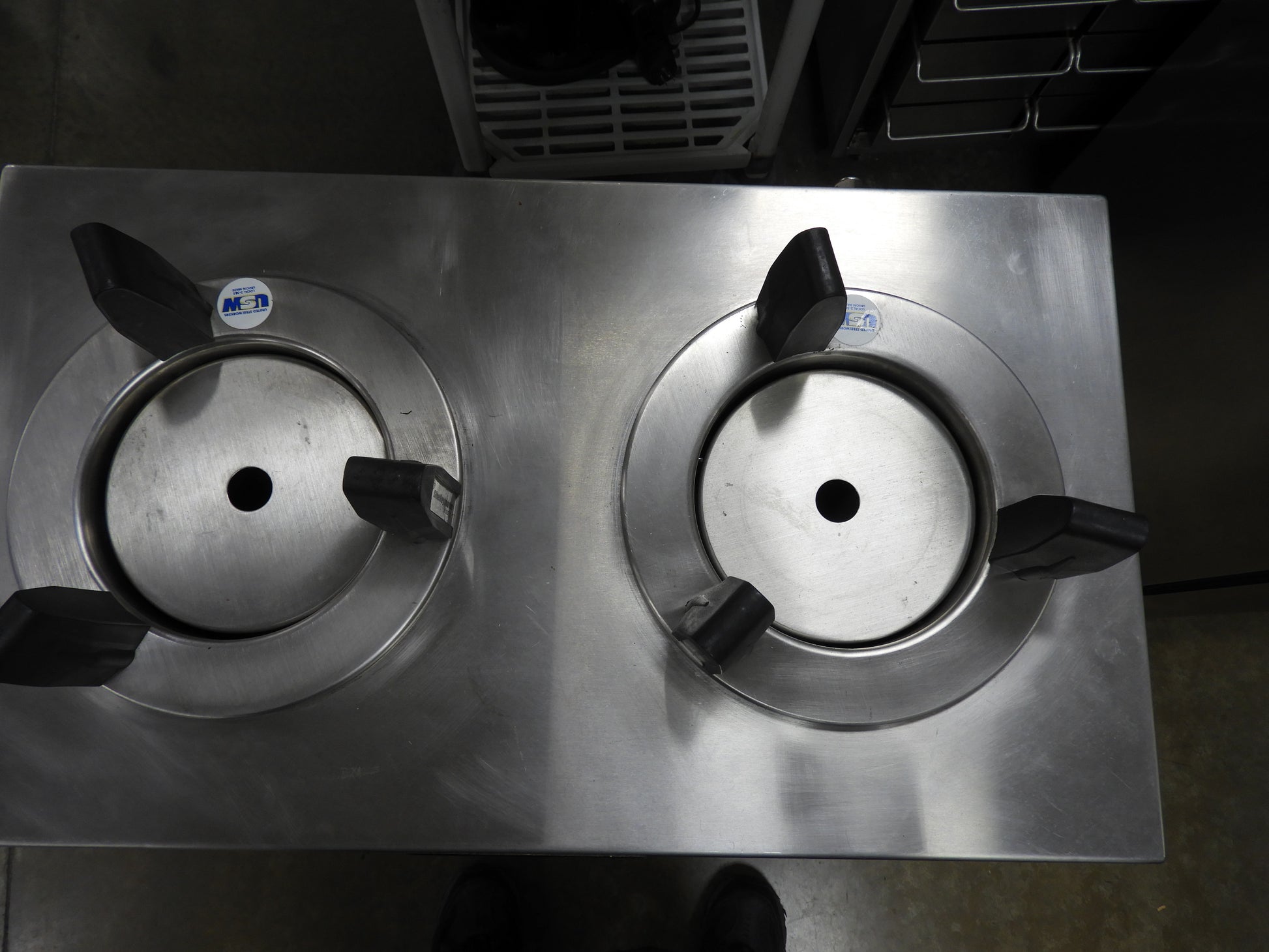 This plate heater is used but has been cleaned and tested. There may be minor scuffs or scratches on it from normal use. This has very nice caster wheel which make it easy to move around,