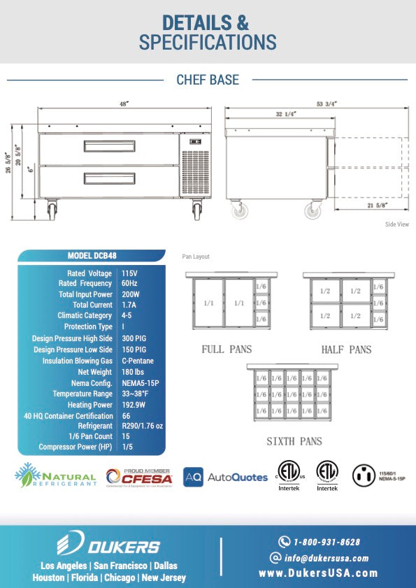 New Dukers DCB48-D2 Chef Base Refrigerator with 2 Drawers