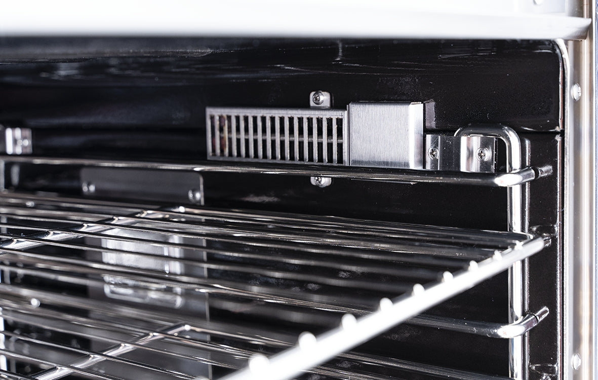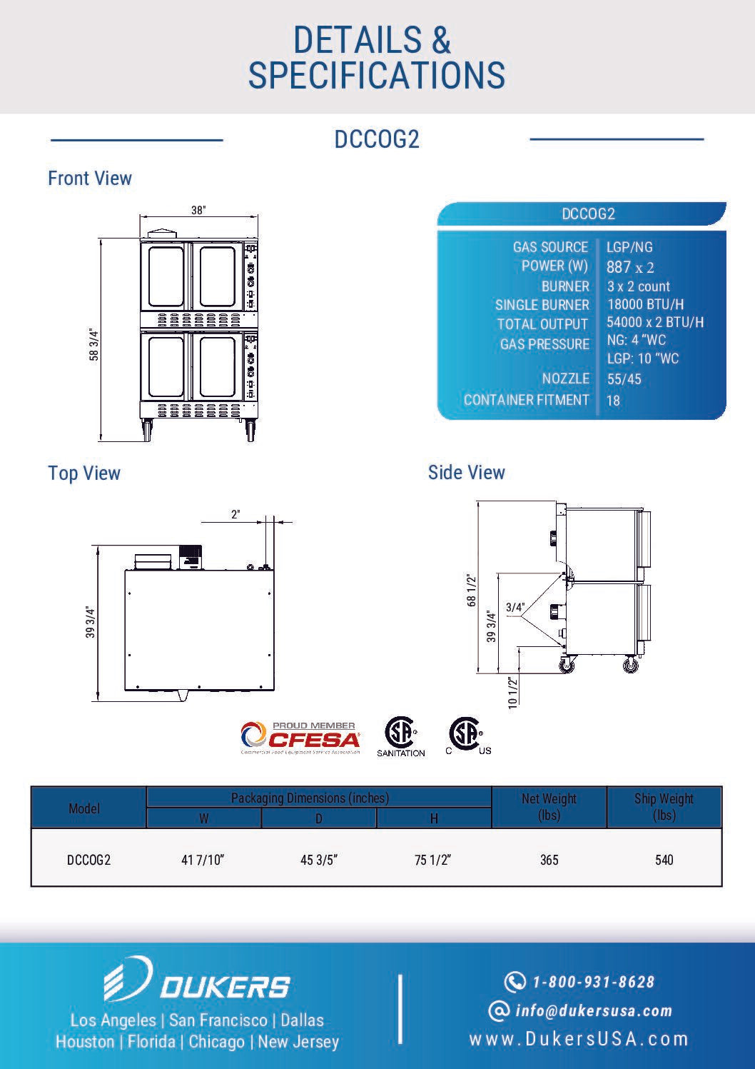 Blow hot oven air over and around the food to cooks evenly and more quickly with the Dukers DCCOG2 Convection over with 3 Burners.
