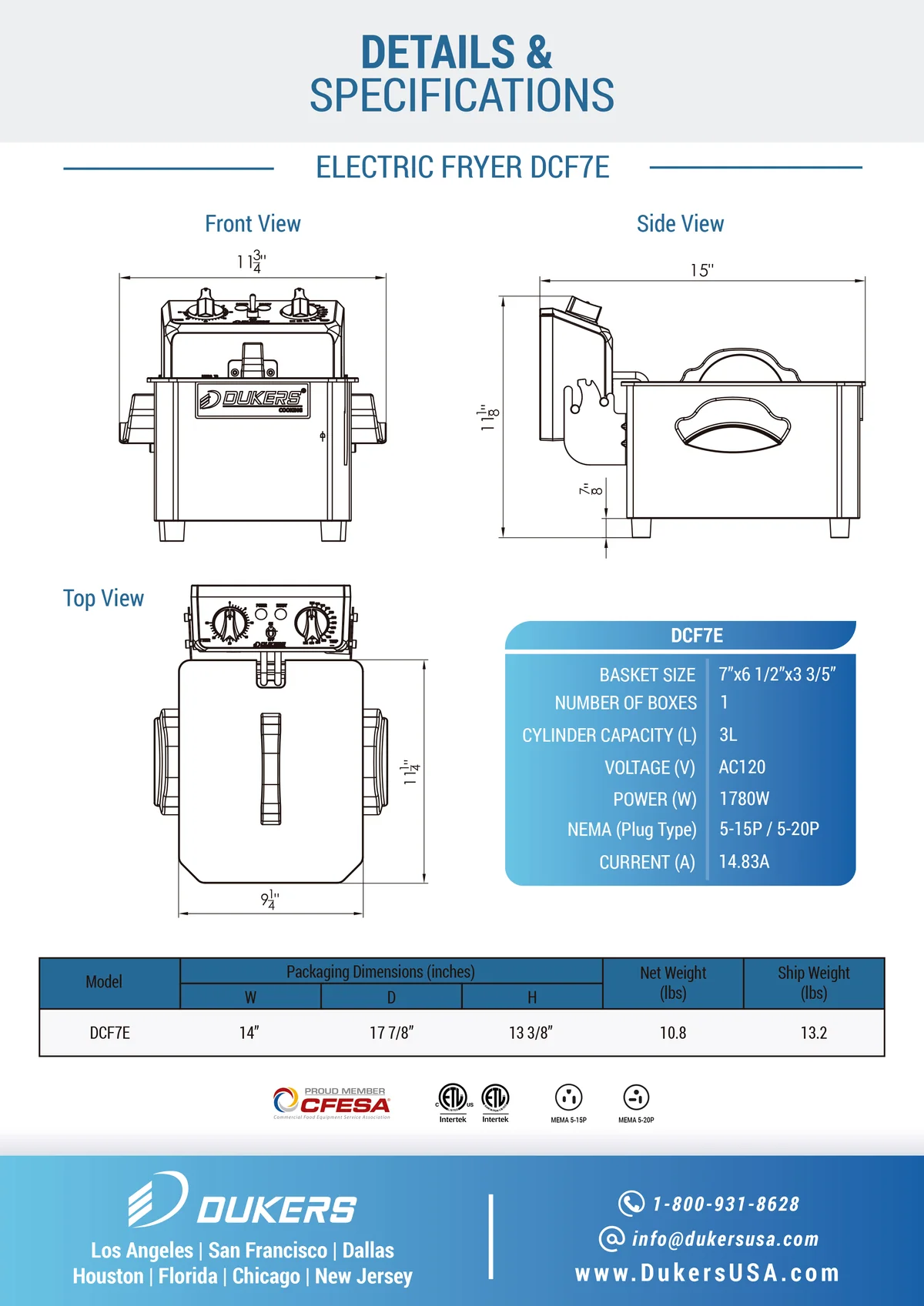 New Dukers - DCF7E, 7lb Single Basket Electric Countertop Deep Fryer 120V