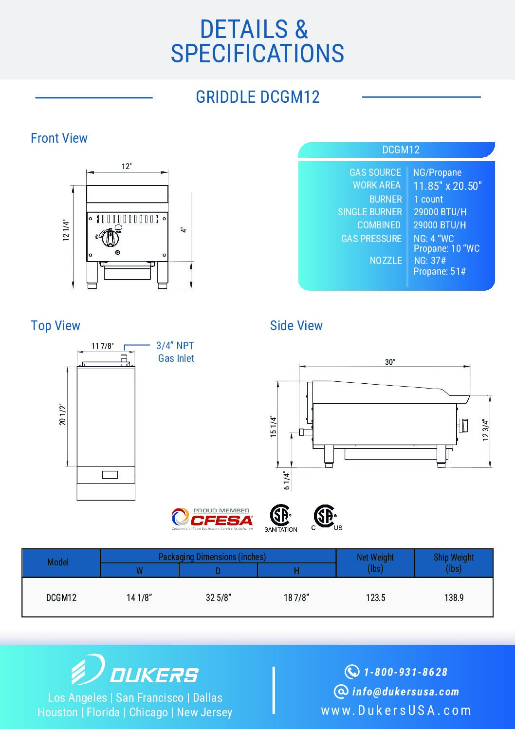 New Dukers DCGM12 12 in. W Flat Top Griddle with 1 Burners