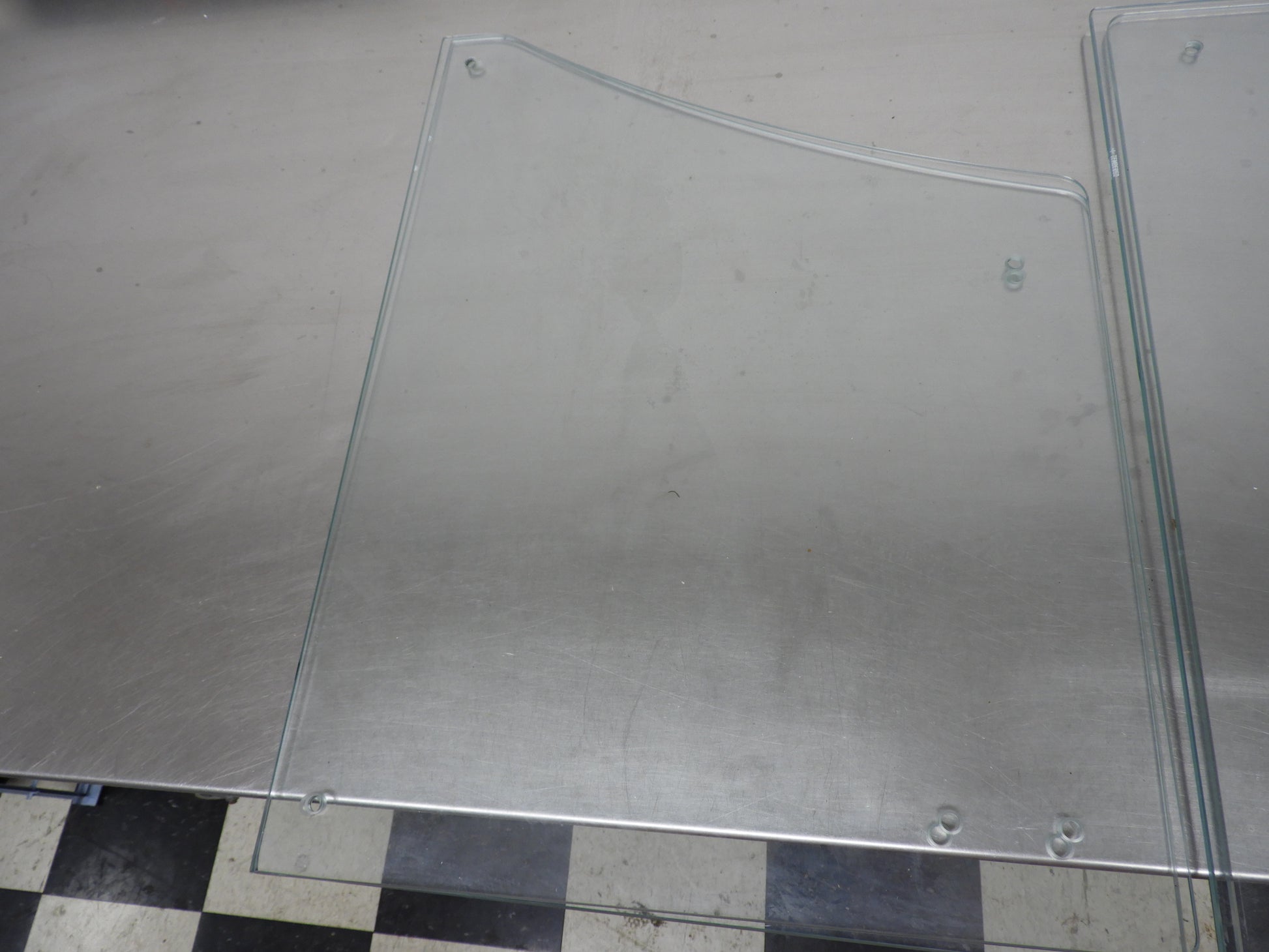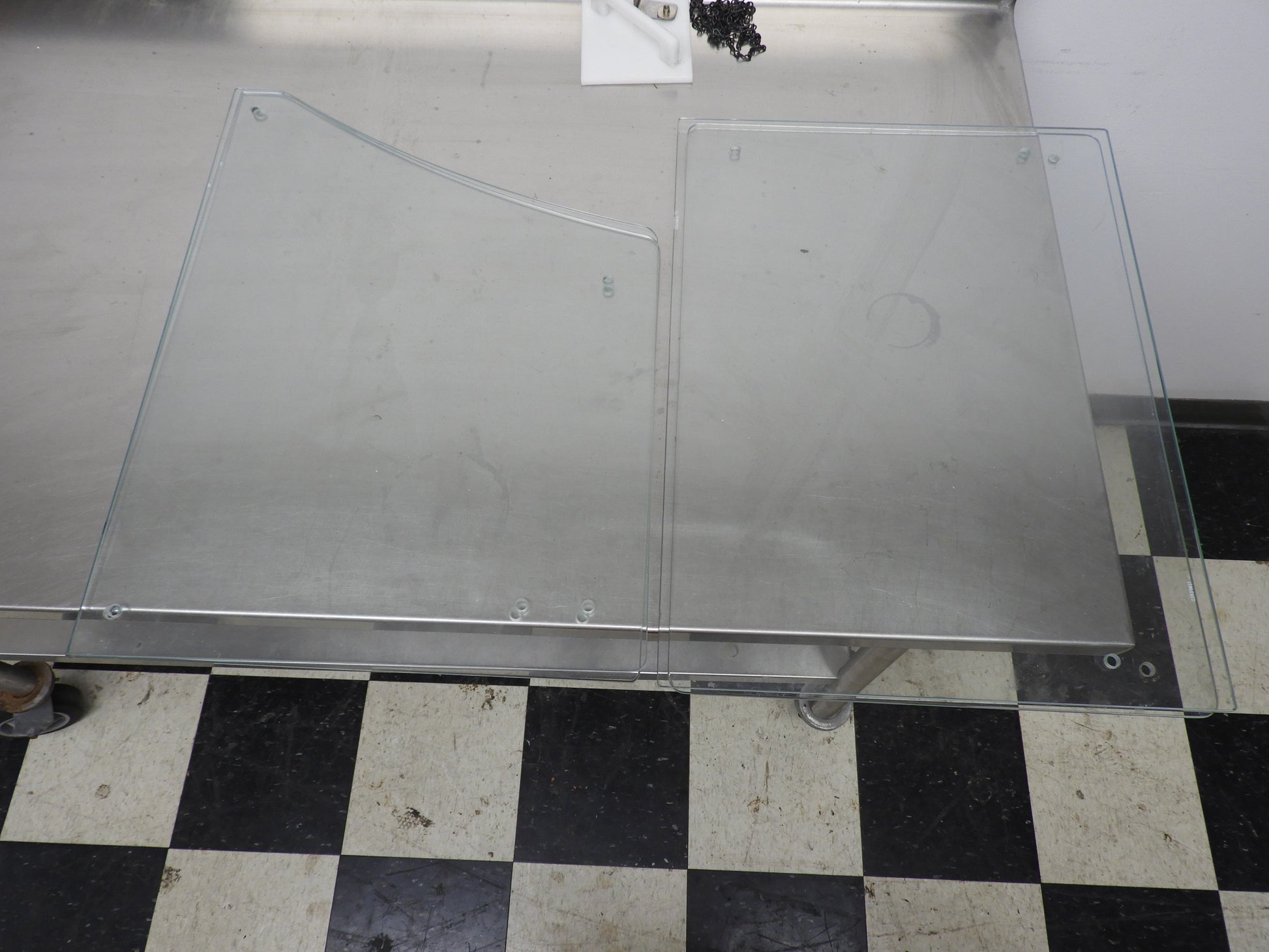 This glass is used but in good usable condition. This is all four pieces for the straight glass cabinet. No mounting hardware is included only the four pieces of glass that make up the sneeze guard.