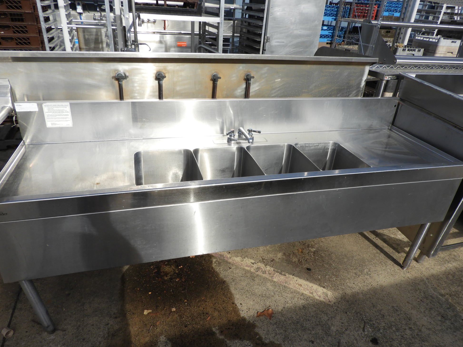 Used Glastender 4 Compartment Under Bar Stainless Steel Commercial sink 84"W X 24"D - SS19