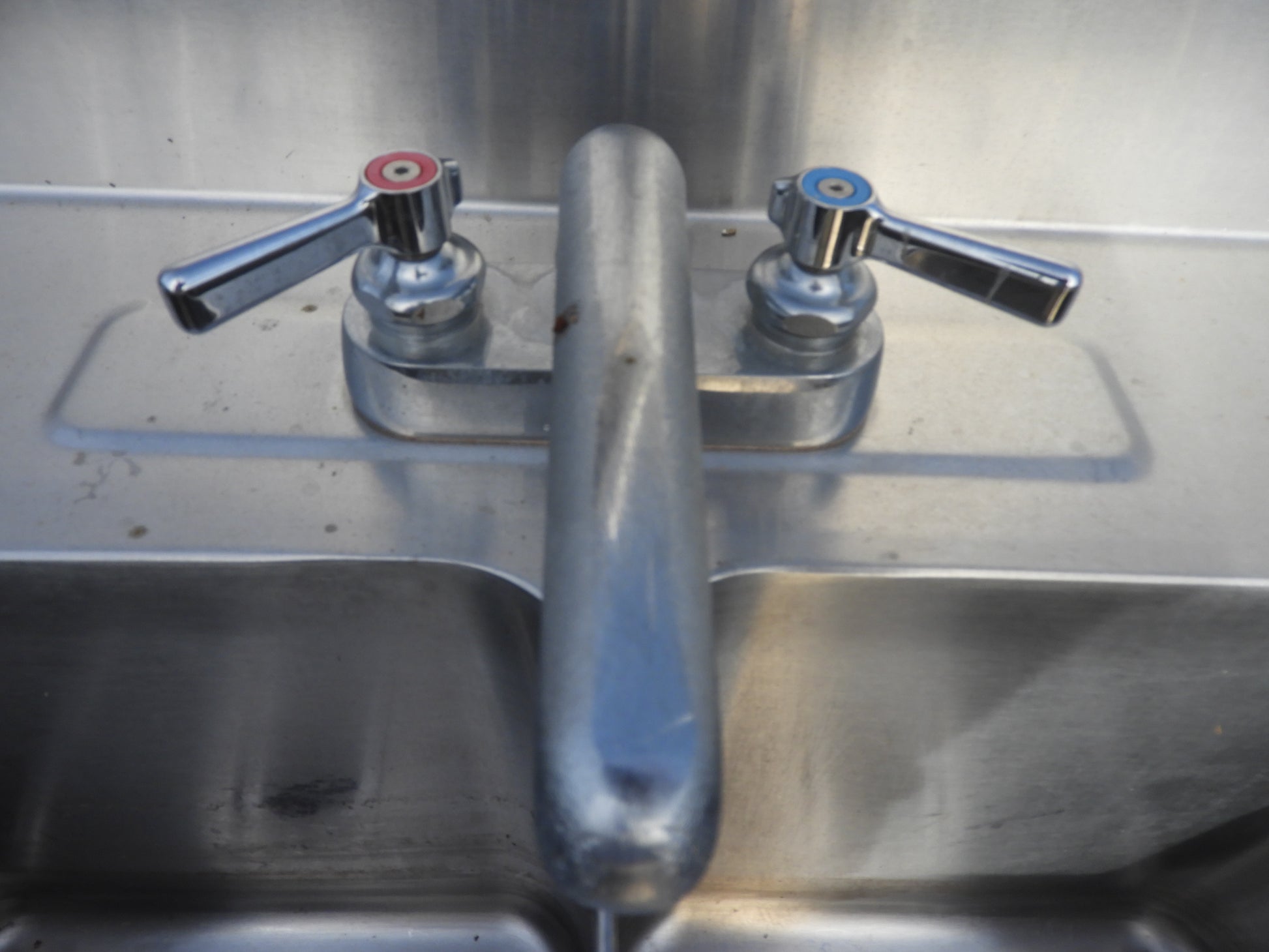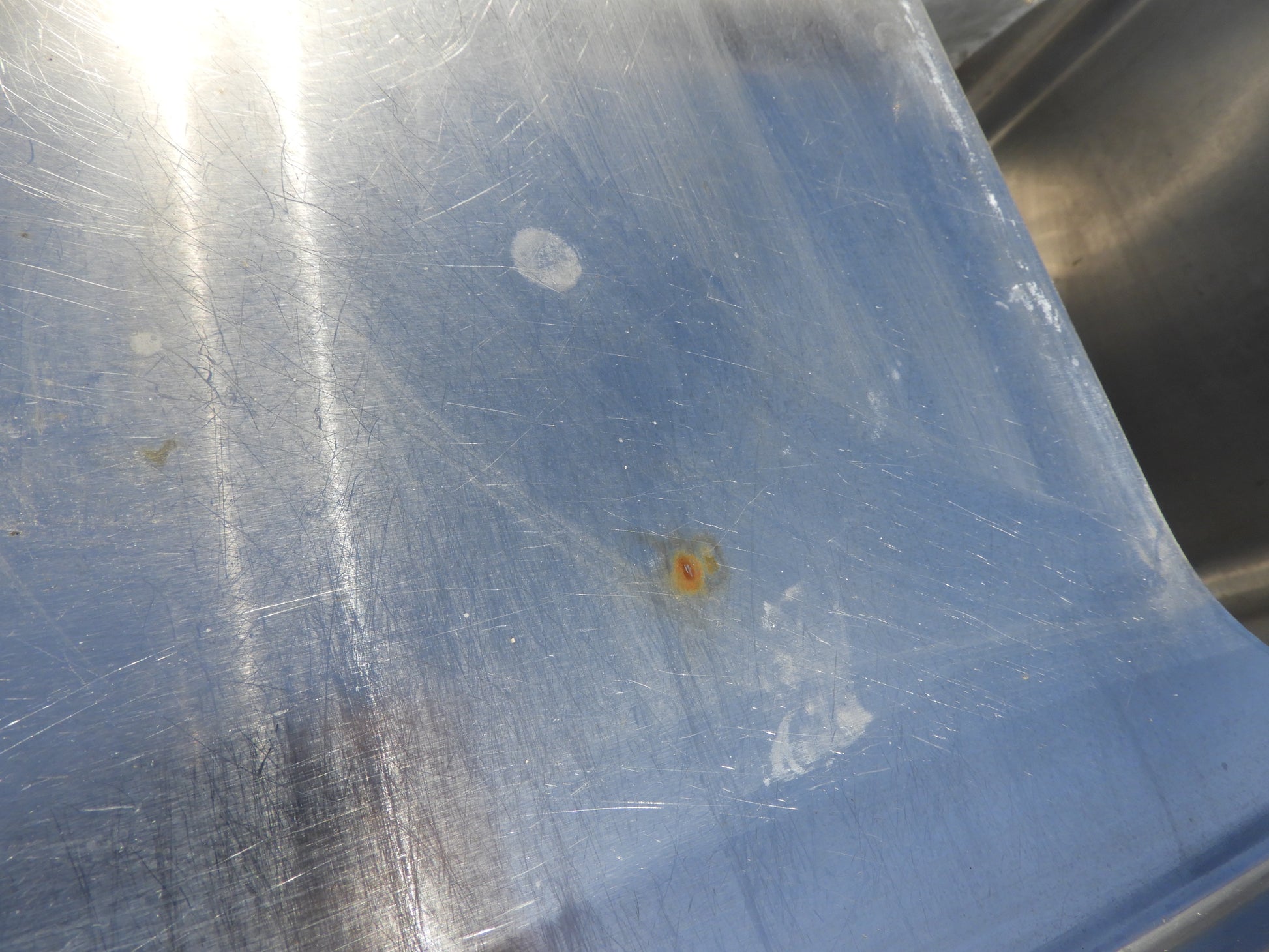 This sink is used but is in good usable condition. There are some scuffs and scratches on it from use. This is a really nice sink.