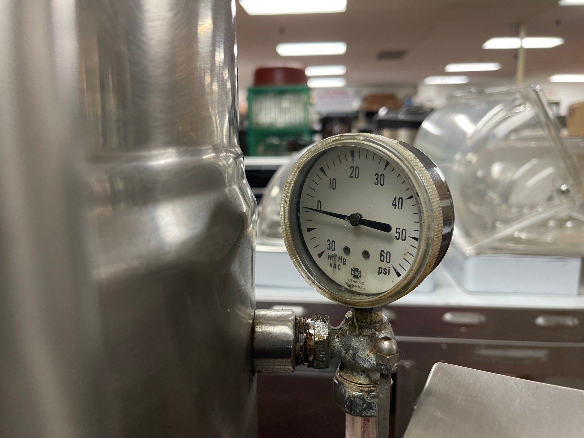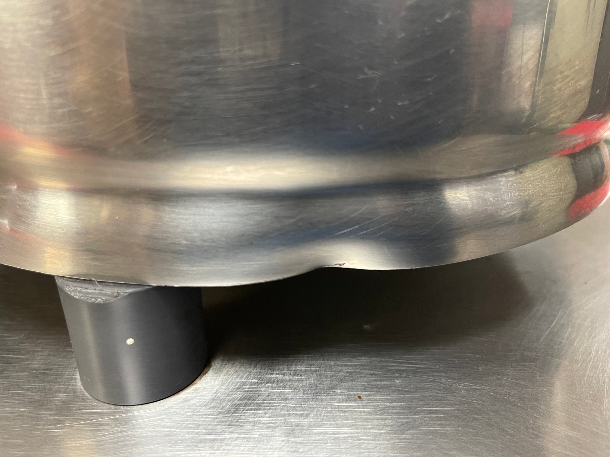This 20qt kettle is used but has been cleaned and tested. There are some minor scuffs and scratches on it from use. This kettle is in great usable condition. The kettle has a 14" diameter and us 11". This has a 2/3 steam jacket. The total dimensions are 25.6"W x 20.8"D x 26"H and weighs 115lbs.