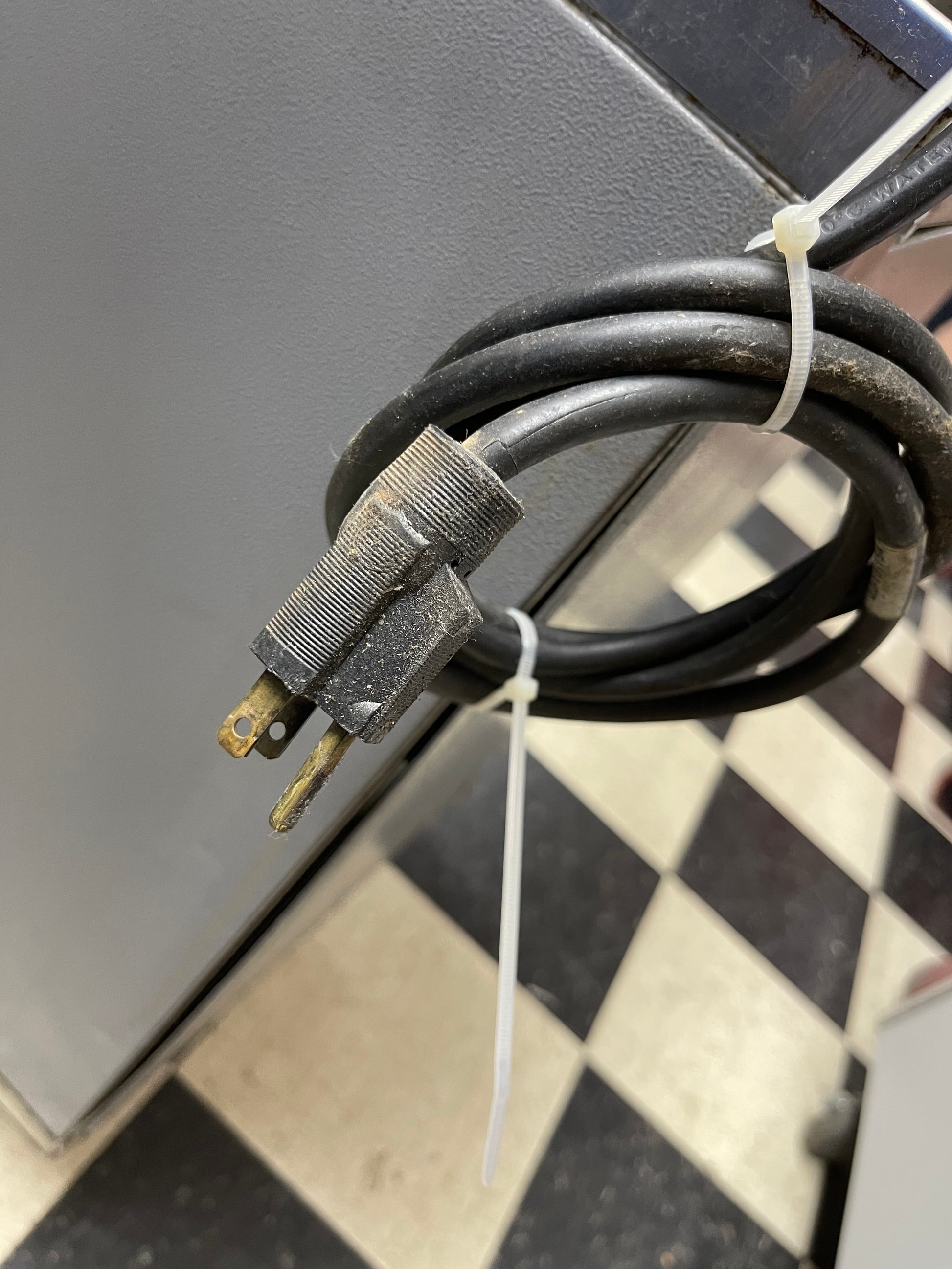 This cabinet is used but has been cleaned and tested. There are some scuffs and scratches on it from normal use. Only what is pictured is included. This has a new water level switch and door gaskets.