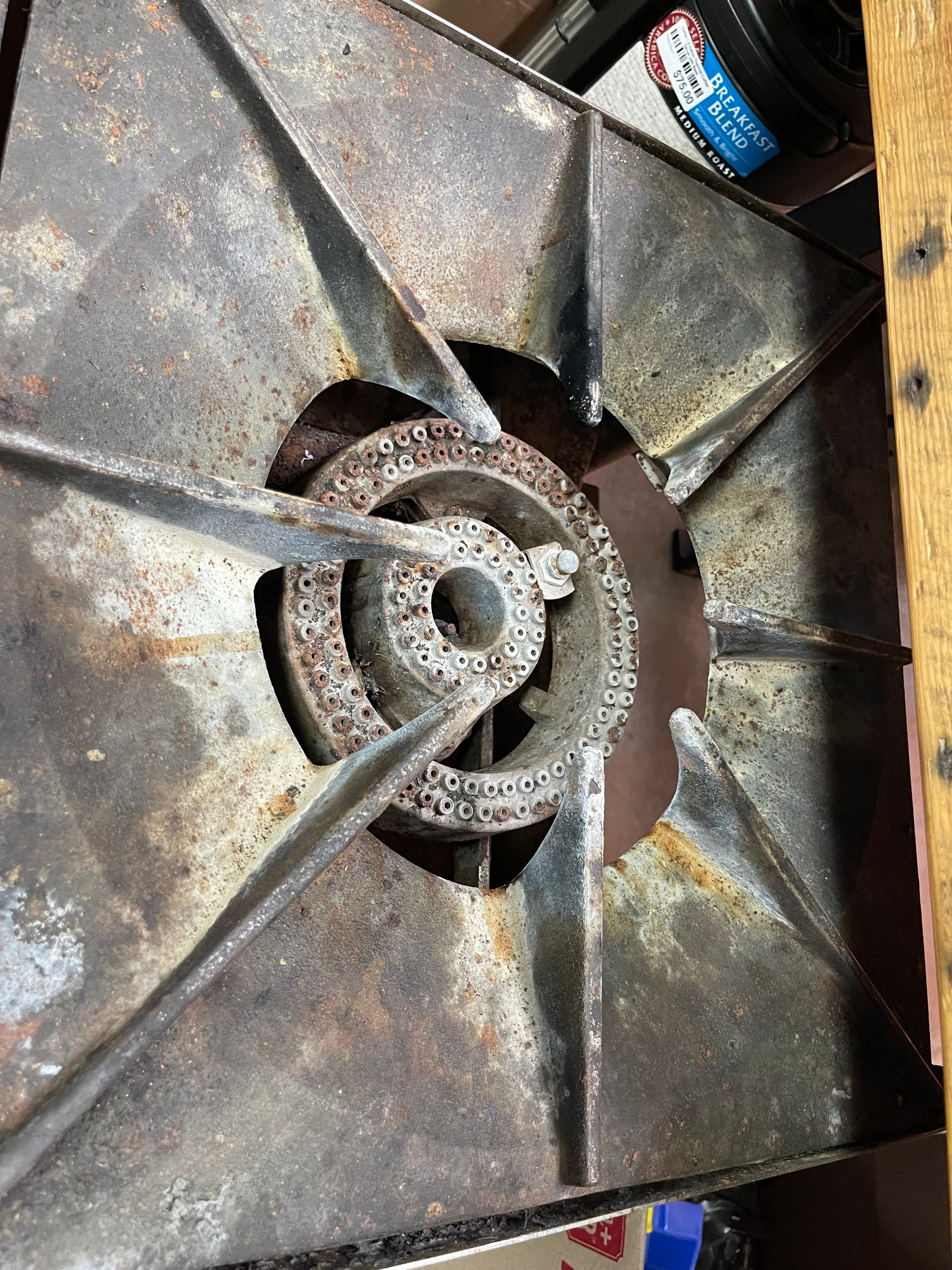 Supreme™ Stock Pot Stove, 18", (2) two ring burner, reversible cast iron top grates for wok or candy bowls, infinite manual control per ring, standing pilot, stainless steel front & plate shelf, tubular legs with adjustable feet, 90,000 BTU, CSAus, NSF