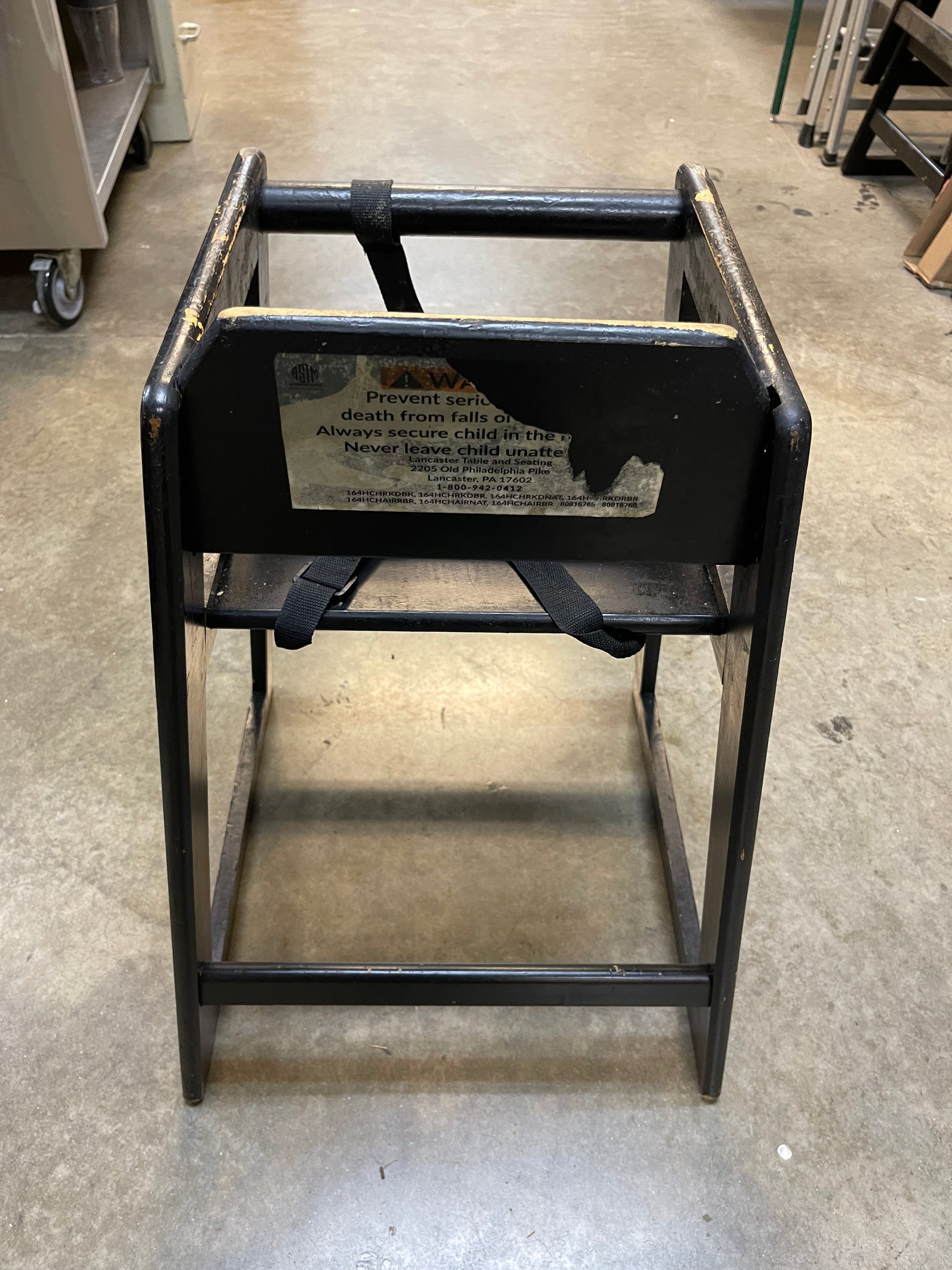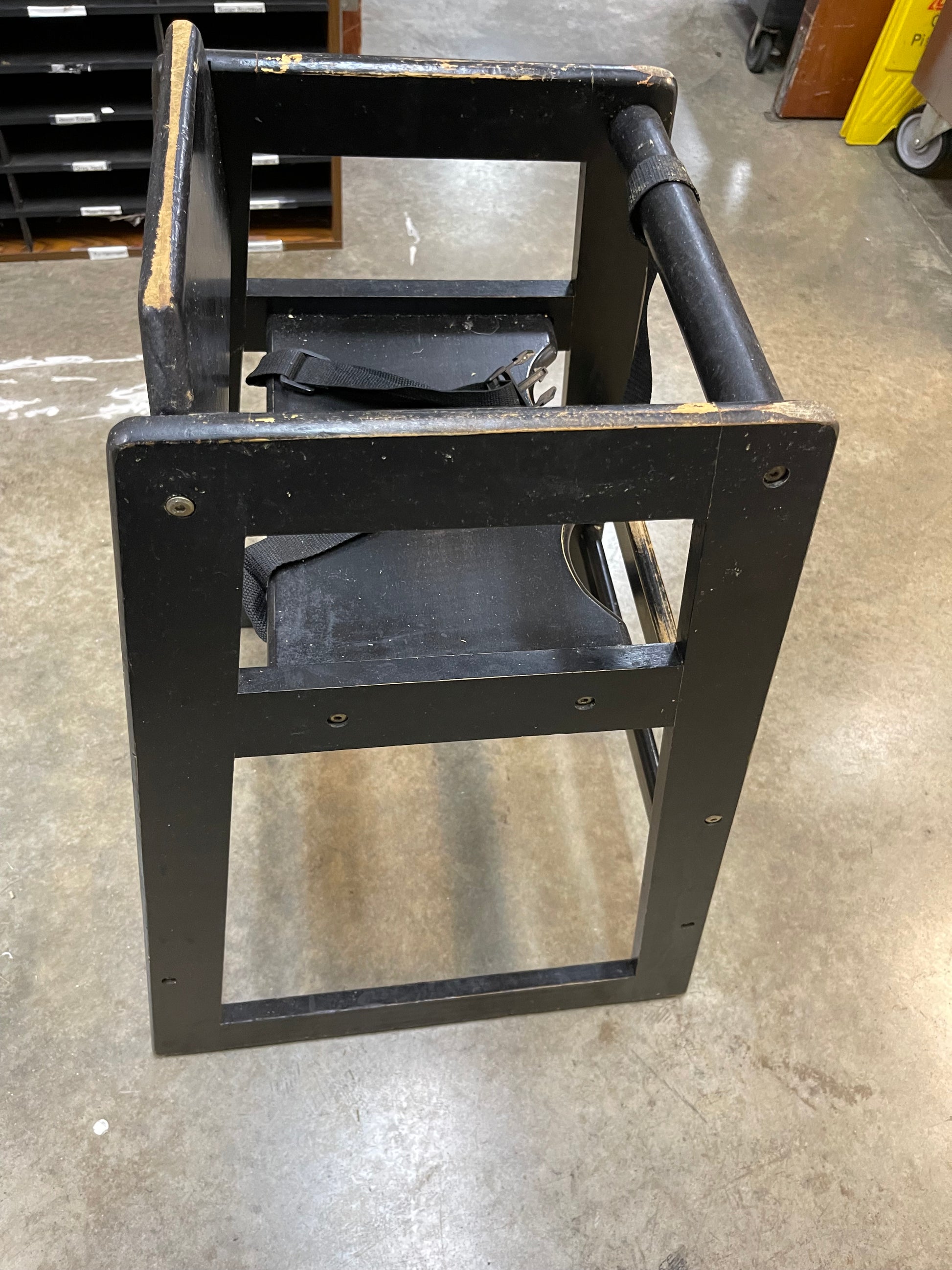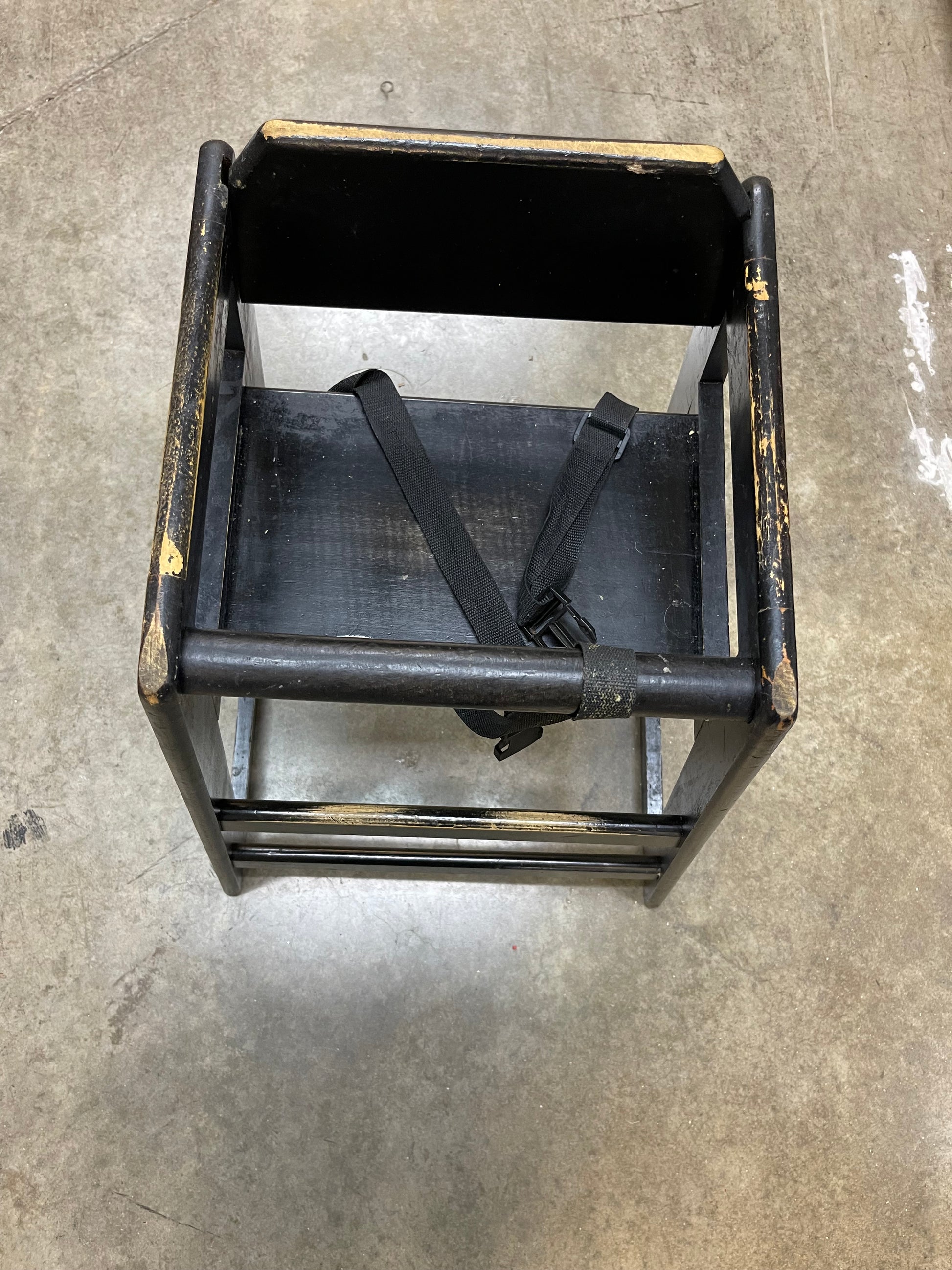 This chair is used but is in good usable condition. There are scuffs and scratches on it from use and being stacked.
