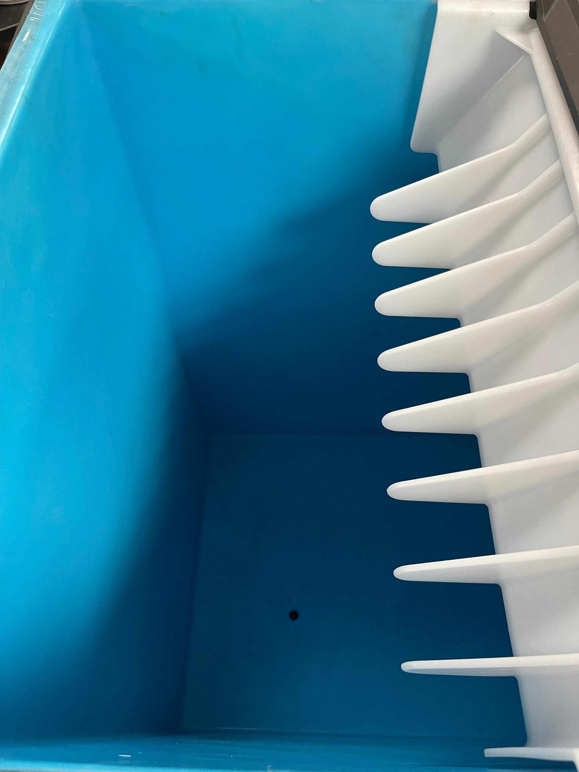 This ice bin is used but has been cleaned and inspected. There are some minor scuffs and scratches from use. This bin is in great usable condition,