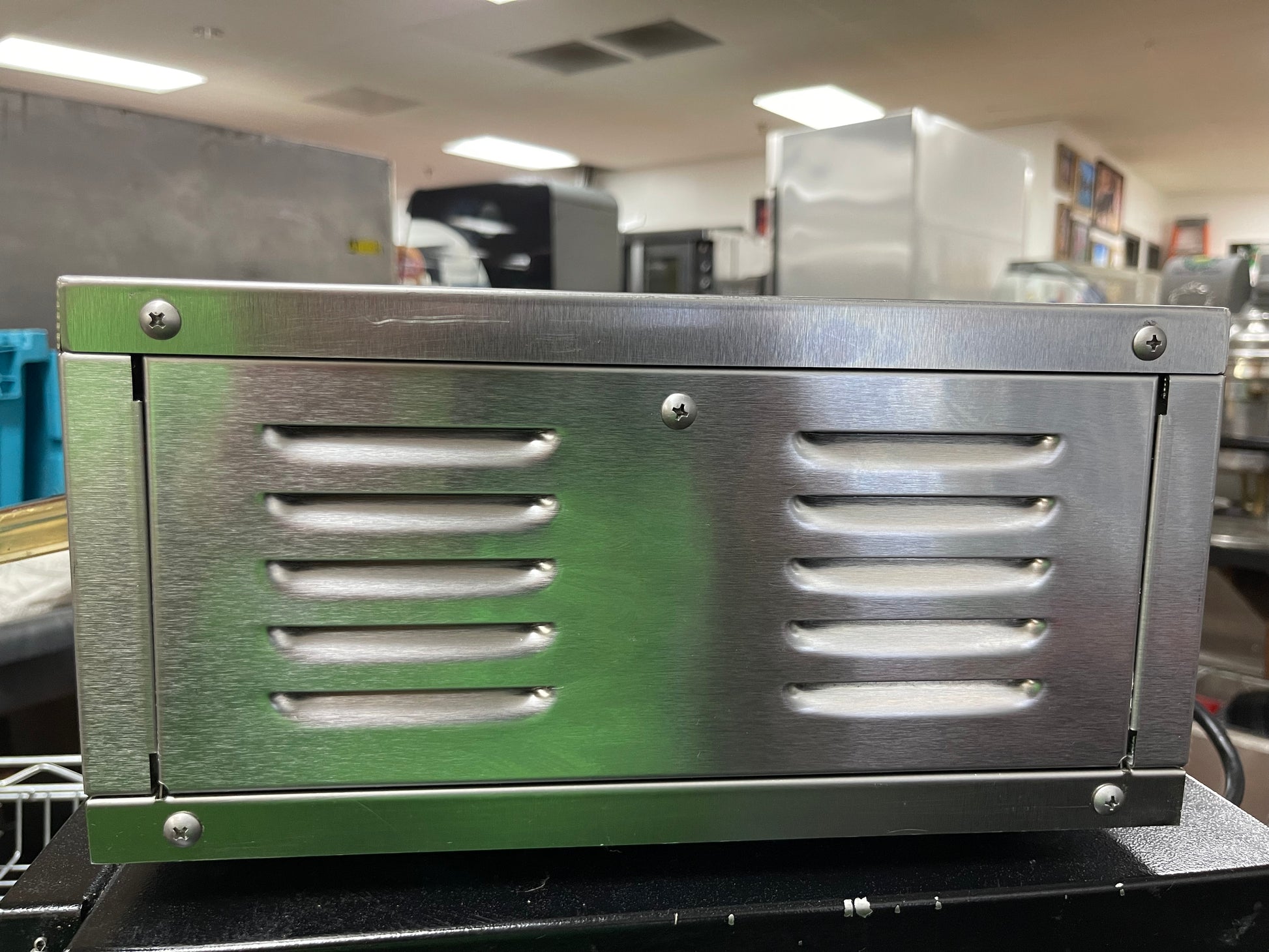This Warmer is used but has been cleaned and tested. There are some minor scuffs and scratches on it from use. The buttons for the controls are a little hard to push, but they all work as they should. The dimensions are 12.25"x11"x6.5" and weighs 10lbs.