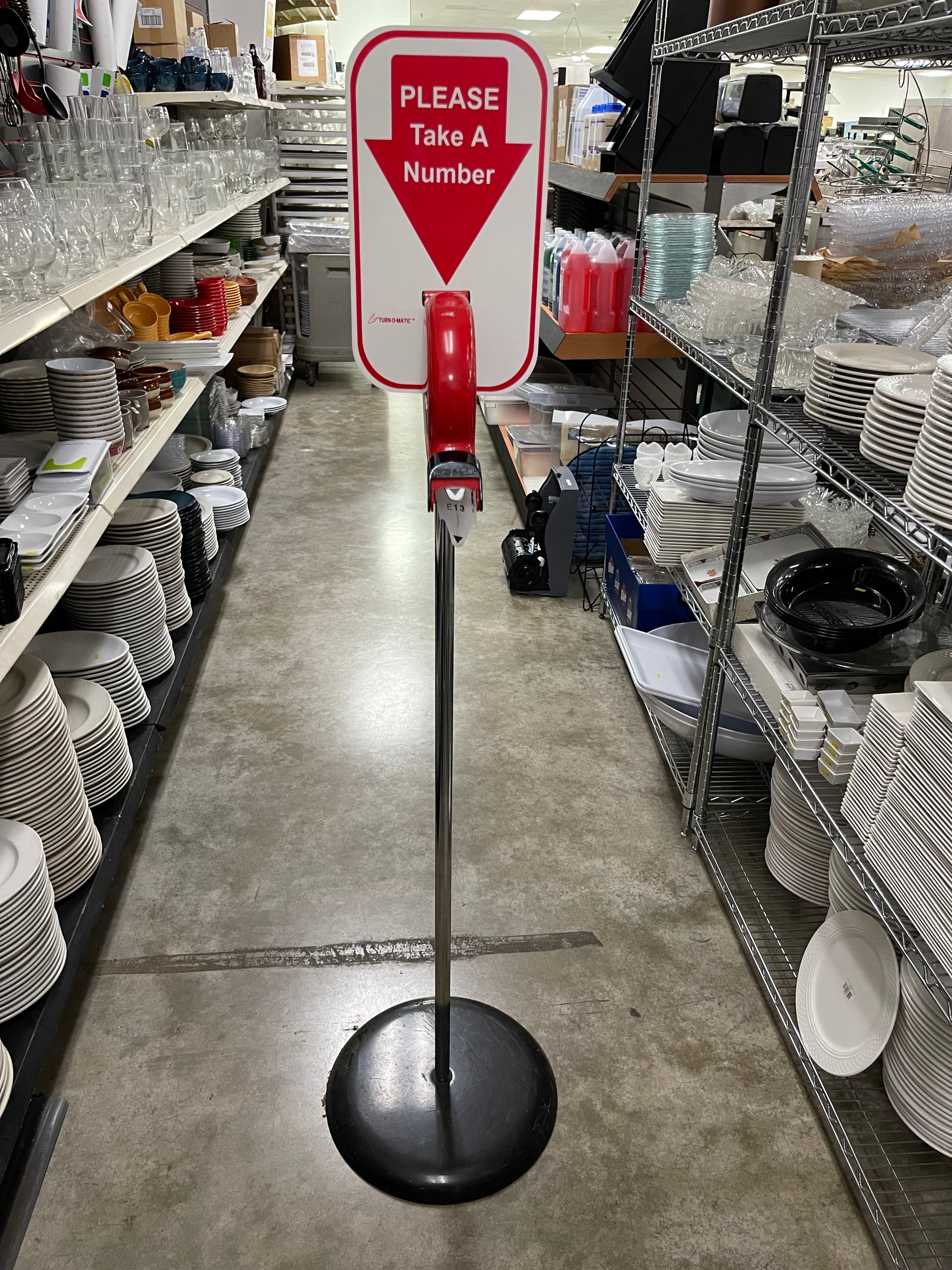 Used Microframe Turn-O-Matic Take A Number Ticket Dispenser with Floor Stand