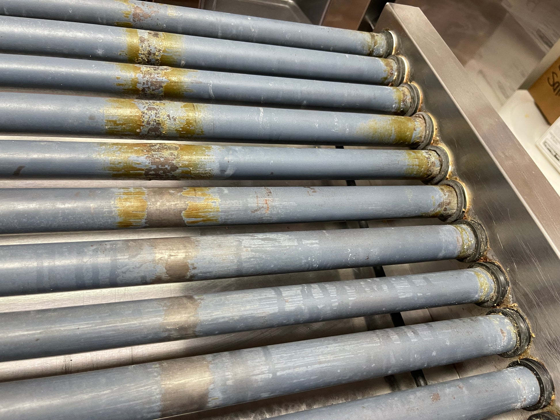 This hot dog roller is used and is being sold as is because the non-stick coating has came off of the rollers. Everything else functions as it should.