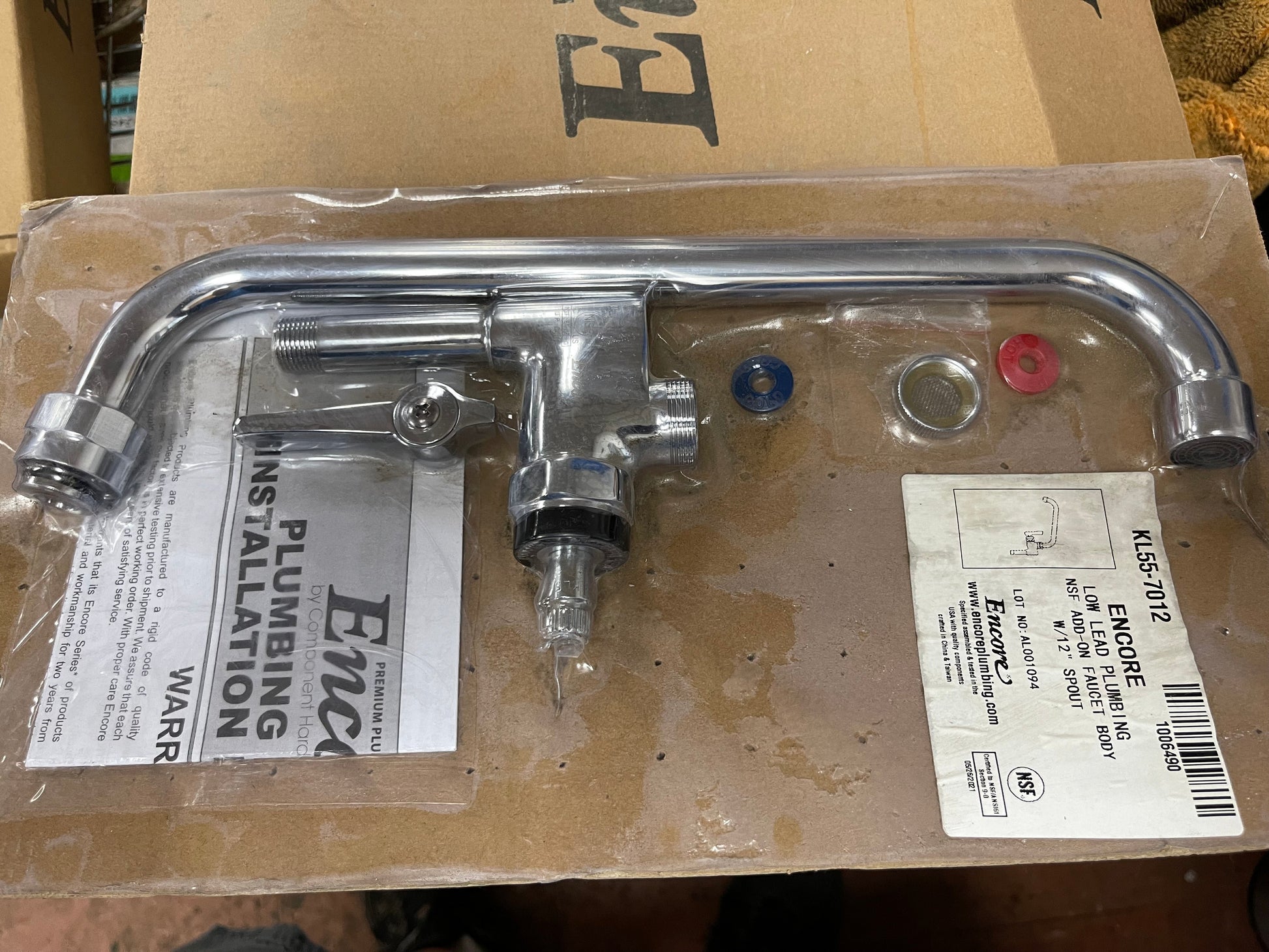 New Encore KL55-7012 Add-On Pre-Rinse Faucet, Plated Chrome, 12" Swing Spout