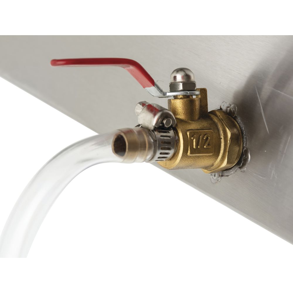 This rectangular tabletop chiller is made solely of stainless steel for long-lasting resilience. The convenient merchandiser is contrived with a shut-off valve and hose, which is beneficial for fully draining pooled water. This tabletop chiller has pitched sidewalls to exhibit merchandise with a distinctive inclined style. The chiller can be combined with a slanted riser (sold separately) if less ice is required or if you need to display petite products. This well-made tabletop chiller is engineered with widespread interior corners, allowing for fuss-less cleaning.