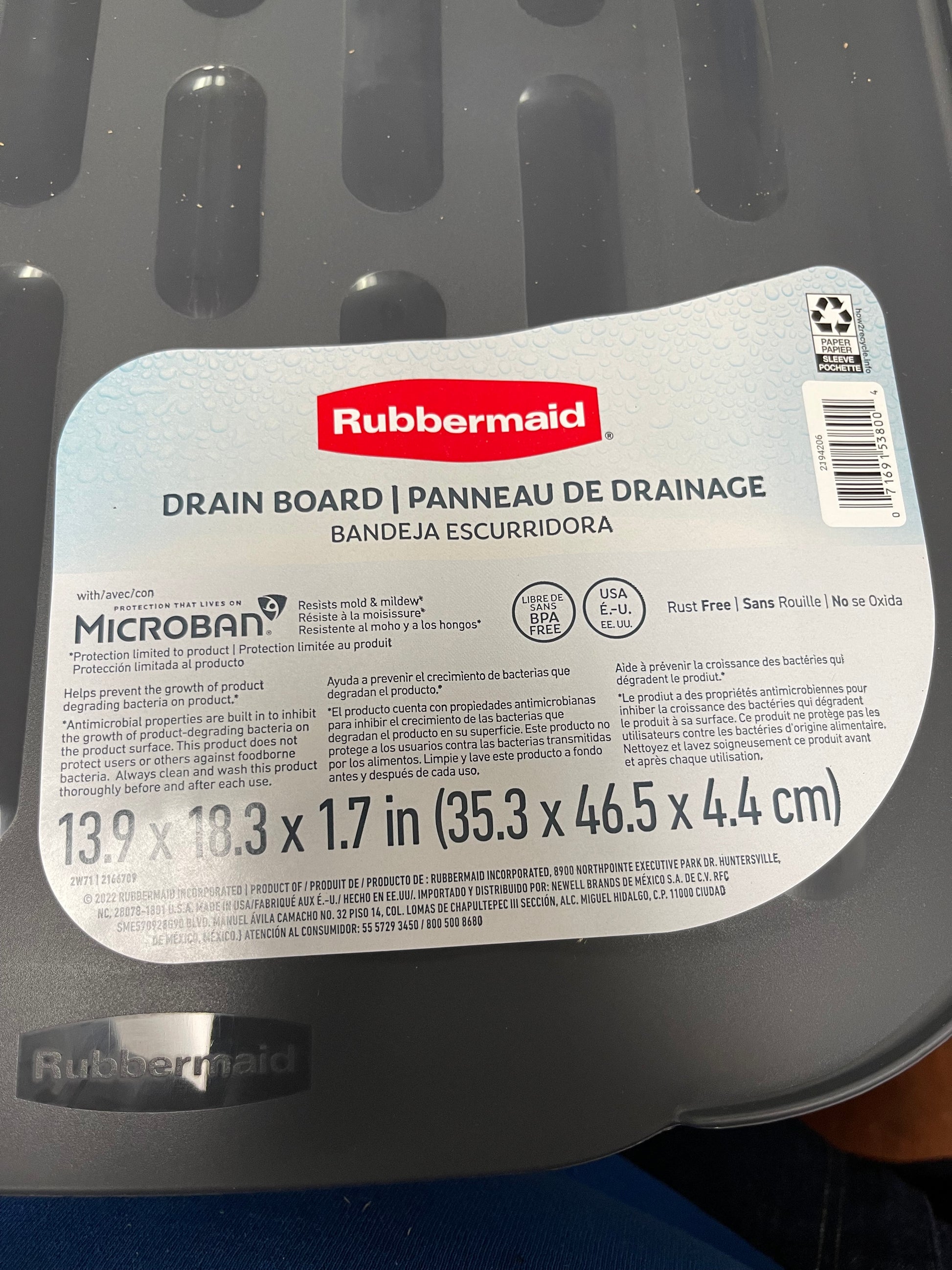 New Rubbermaid 2166709 Gray Antimicrobial Dish Drain Board for Sink