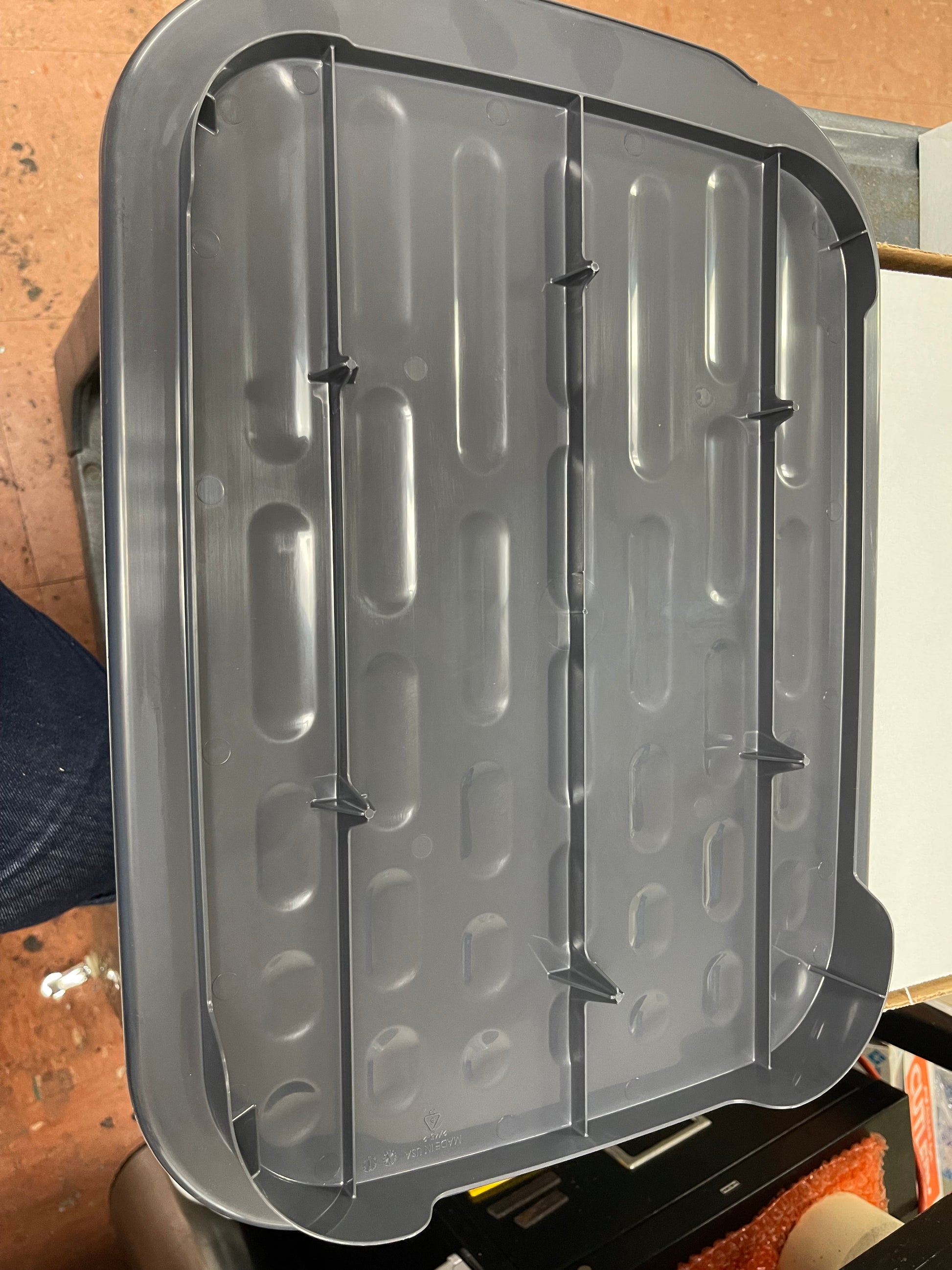 This is a new Rubbermaid drain board. The dimensions are 13.81 in. L X 18.25 in. W X 2 in