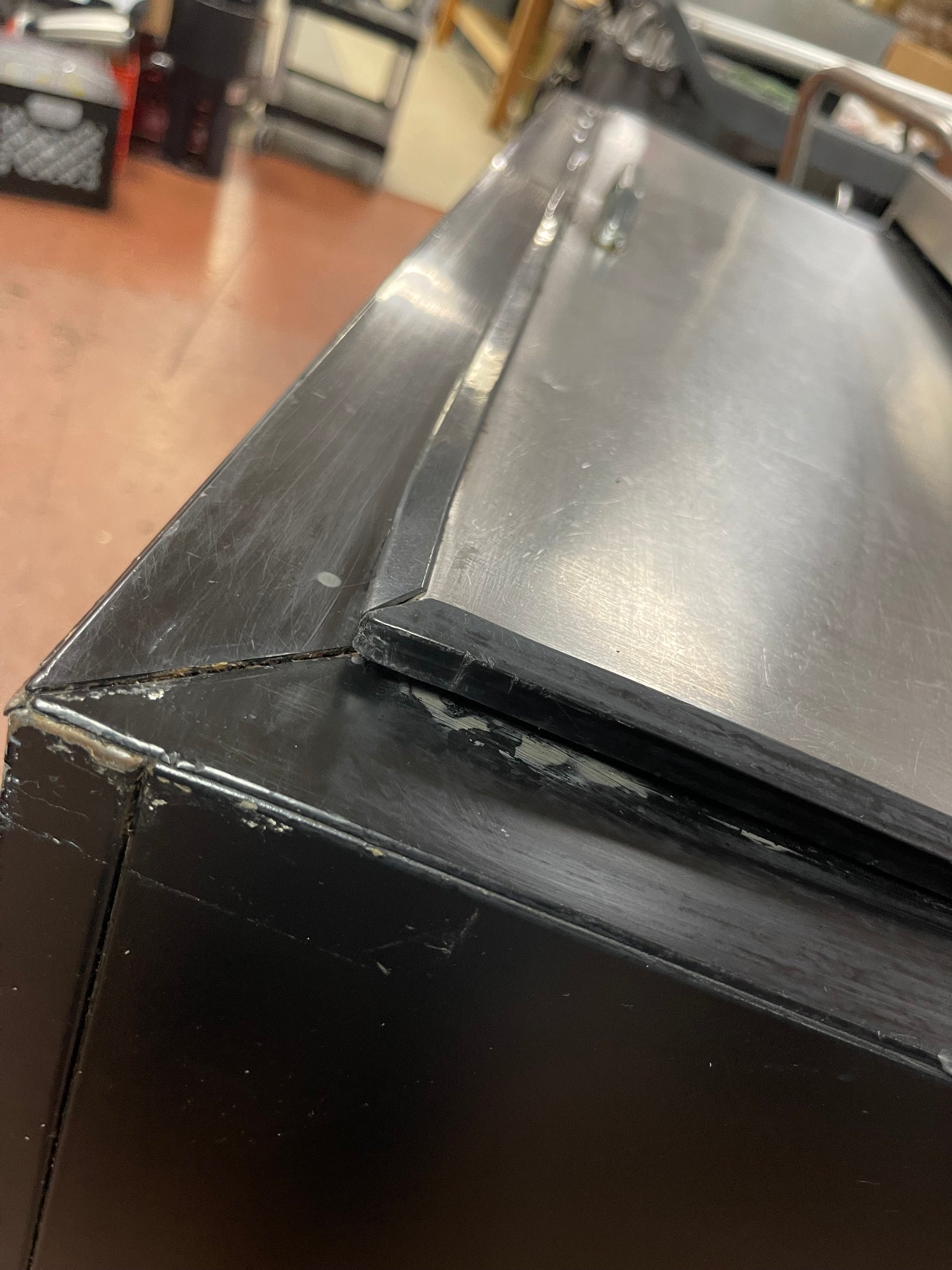 This glass froster is used but has been cleaned and tested. There are scuffs and scratches on it from use. This just had a new fan motor installed.