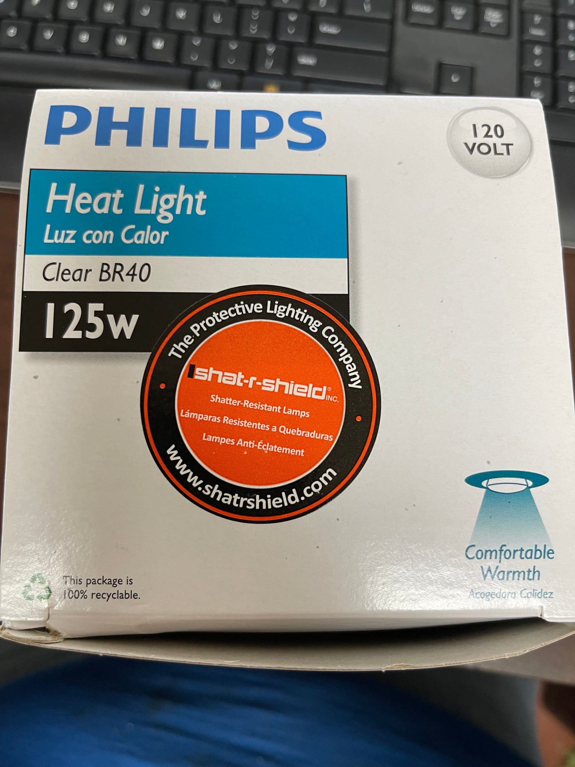 New Philips BR40 Clear Heat Light 125W Medium Base.