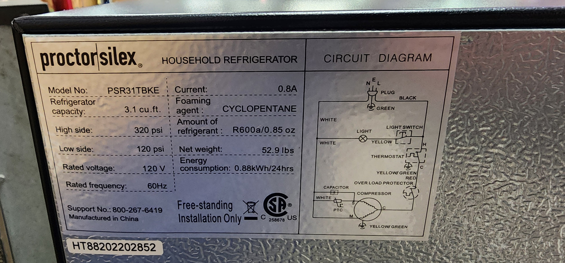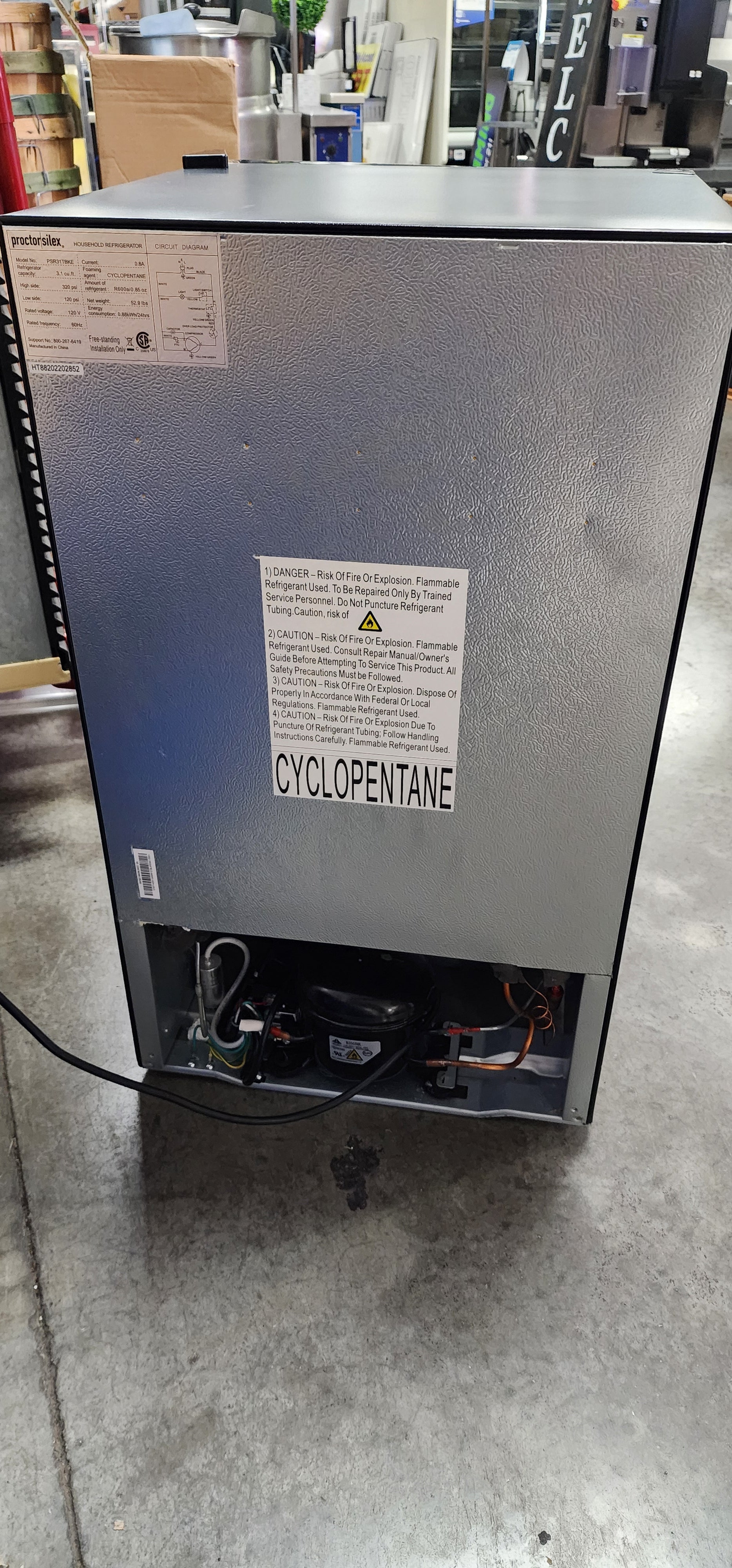 Used Proctor|Silex PSR31TBKE Compact Refrigerator w/ Reversible Double Door Top Mounted Freezer, 3.1 Cubic Feet, Black 120V