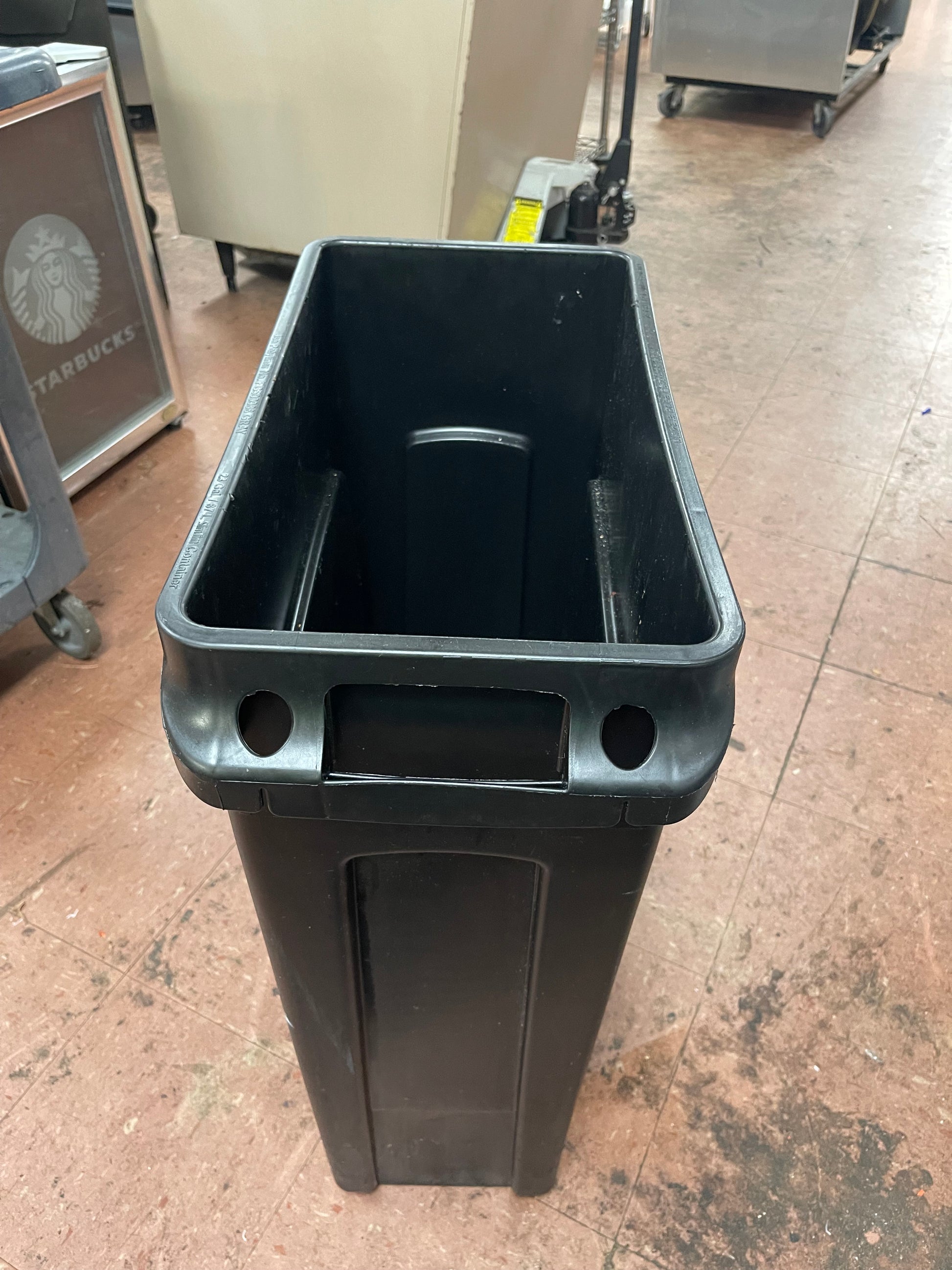 Used Rubbermaid 23 Gallon Slim Jim Black Rectangular Trash Can
