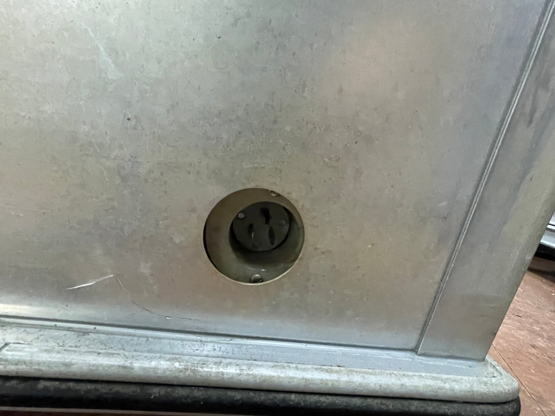 This cabinet is used but has been cleaned and tested. There are some scuffs and scratches from use, The dimensions are 22.75"W x 32.75"D x 66"H. This will hold 34 18"x26" trays (not included).