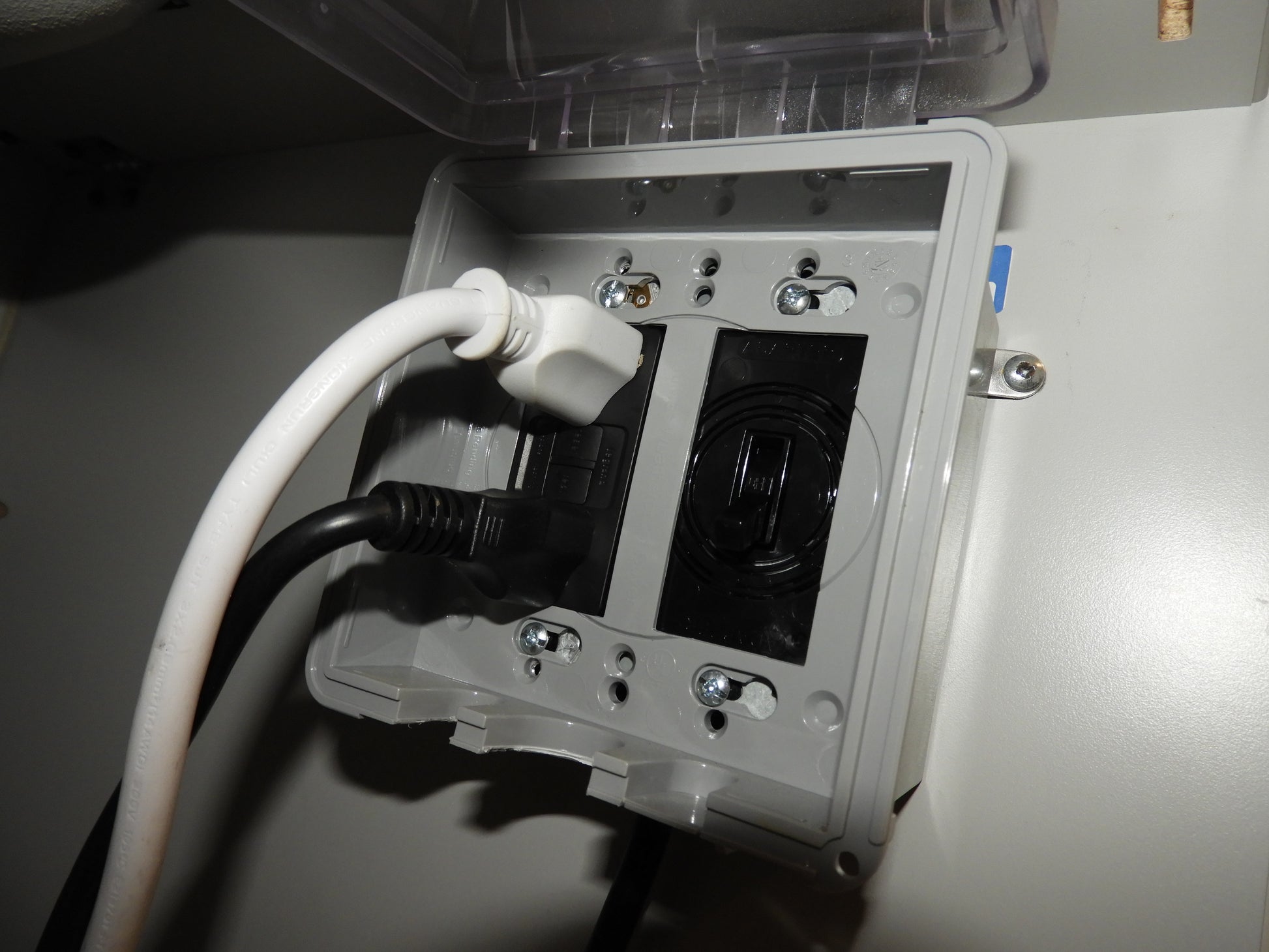 This sink is used but in has ben inspected and tested. There are some scuffs and scratches on it from normal use. This is in good working condition, This is a great portable sink complete with water pump and water collection containers. This has its own 120 Volt power cord, outlets and switch to operate it under the sink. The door on this is missing the lock/latch, but that would be an easy fix. This would be a nice item for a food truck or concession trailer. The dimensions are 37"x24"x24". This does have wheels and moves around very easy.