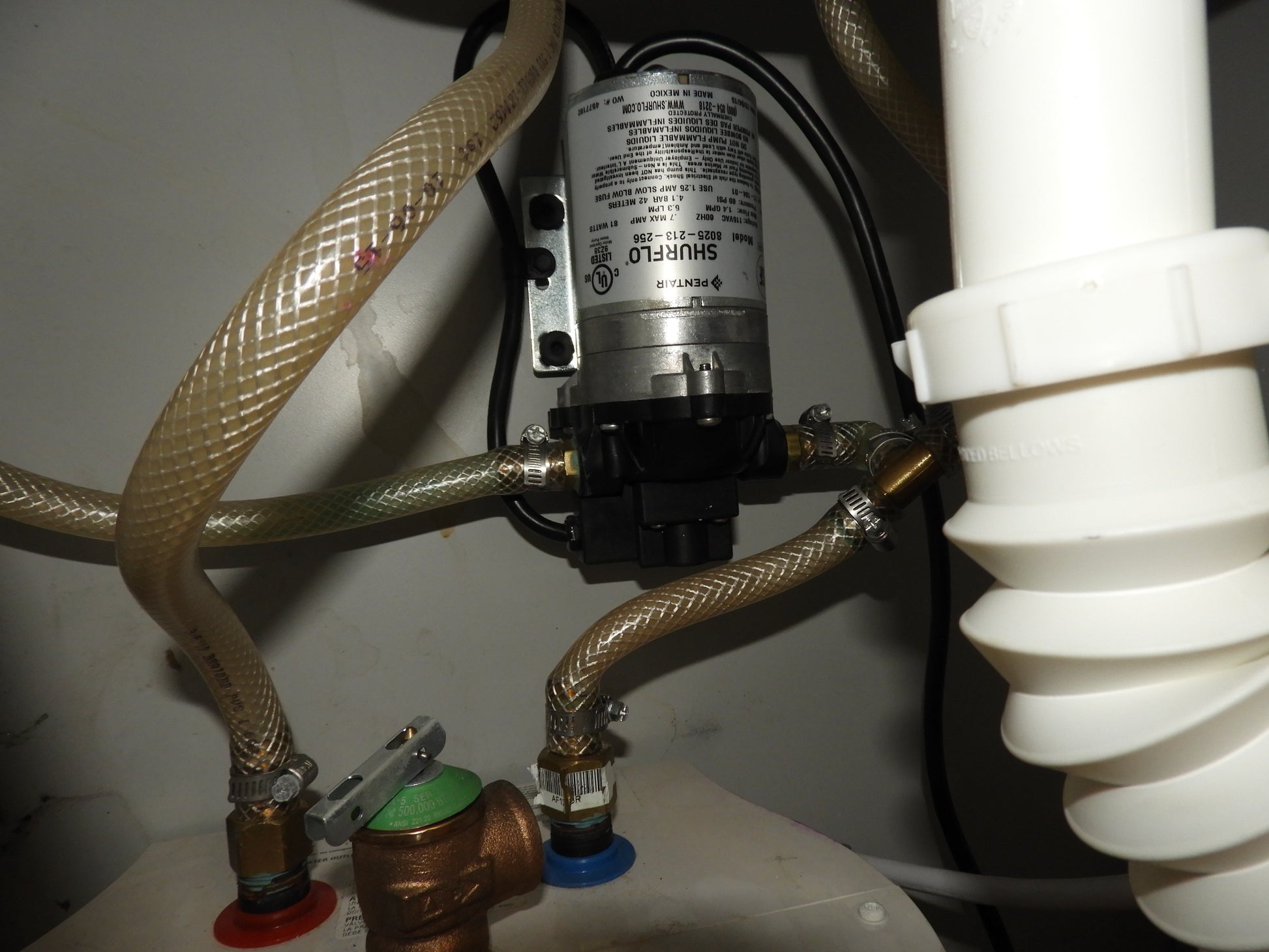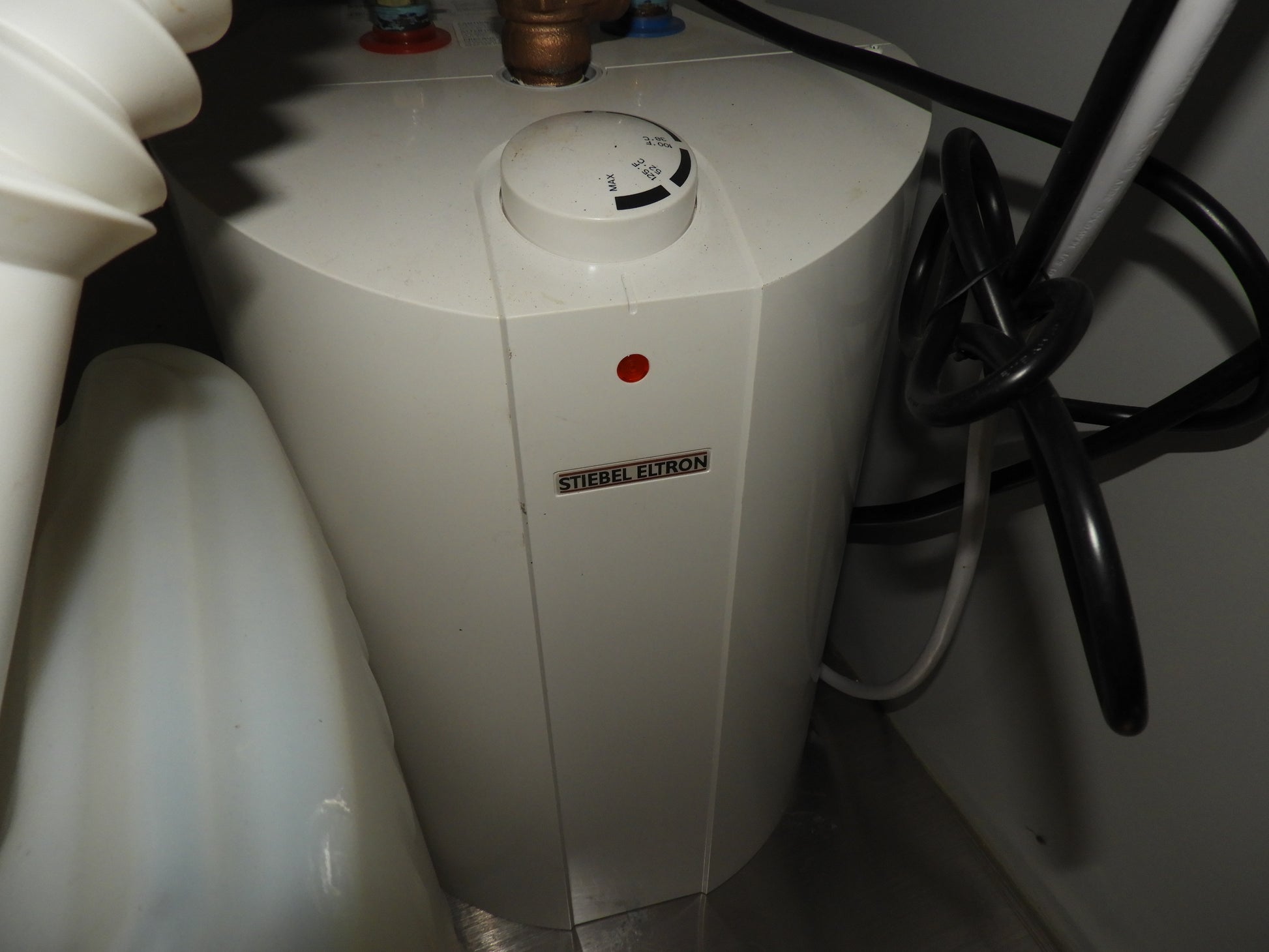 This sink is used but in has ben inspected and tested. There are some scuffs and scratches on it from normal use. This is in good working condition, This is a great portable sink complete with water pump and water heater. This is missing one of the water containers as seen in pictures. This has its own 120 Volt power cord, outlets and switch to operate it under the sink. The door on this is missing the lock/latch, but that would be an easy fix. This would be a nice item for a food truck or concession trailer. The dimensions are 37"x24"x24". This does have wheels and moves around very easy.