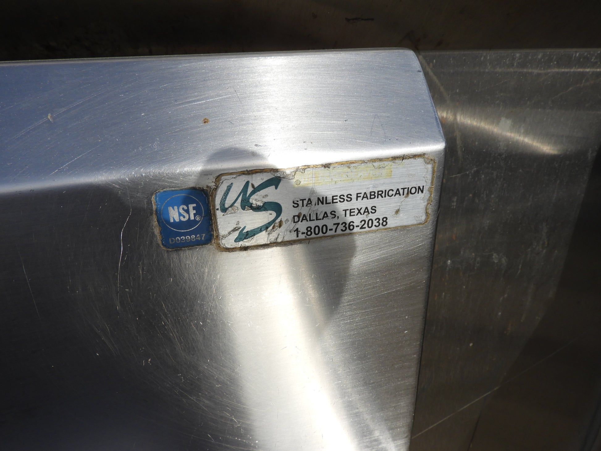 This sink is used but is in good usable condition. There are scuffs and scratches on it from use. The dimensions are 96"x30"x32.5" and the bowl is 20"x20"x14".