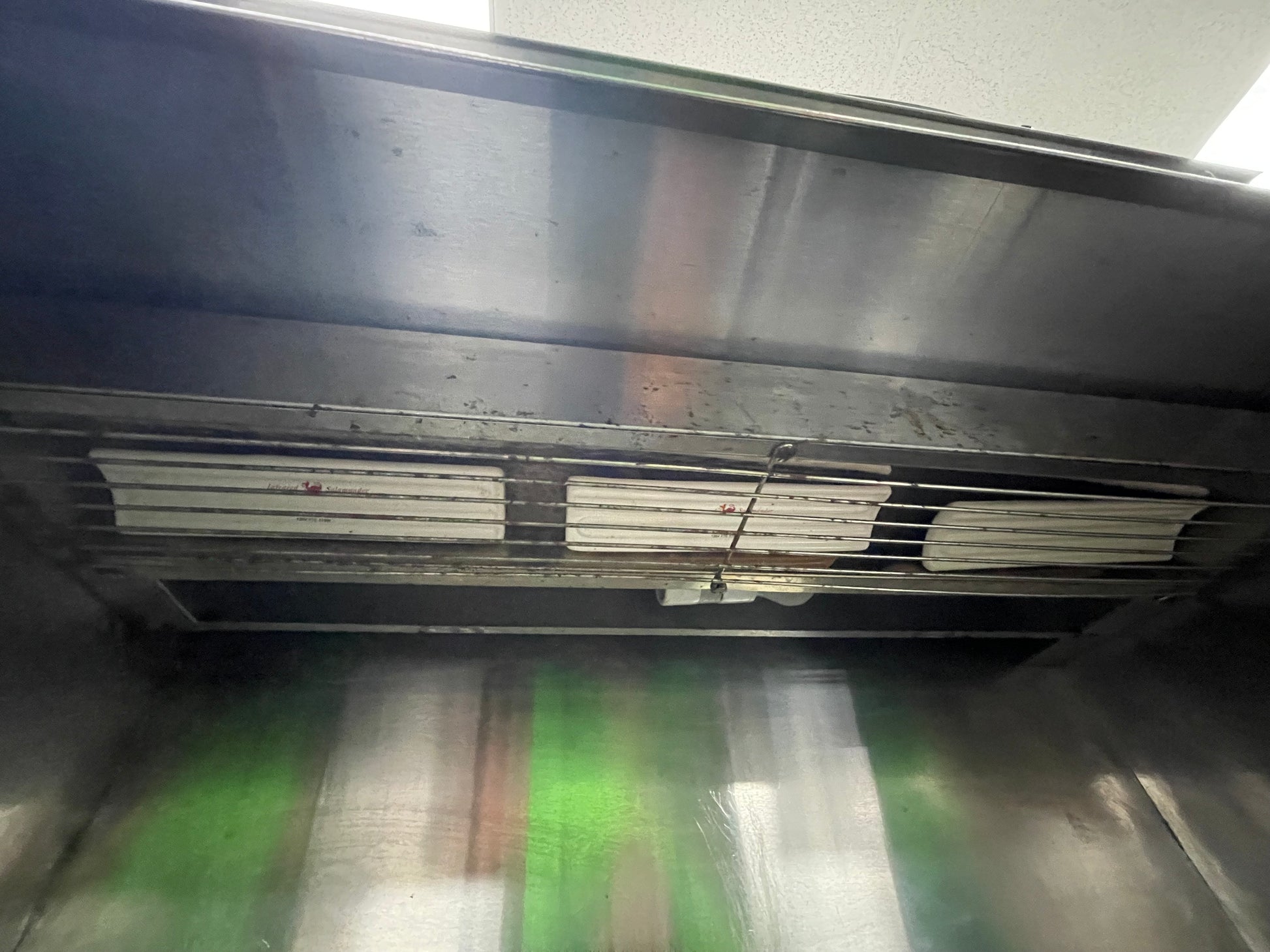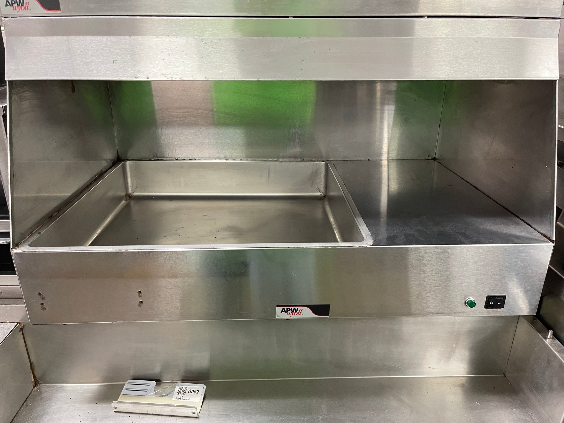 This item is used but has been cleaned and tested. There are some scuffs and scratches from use. There is a radiant heat strip in the top to keep food hot. The dimensions are 33.5"x20.5"x19".