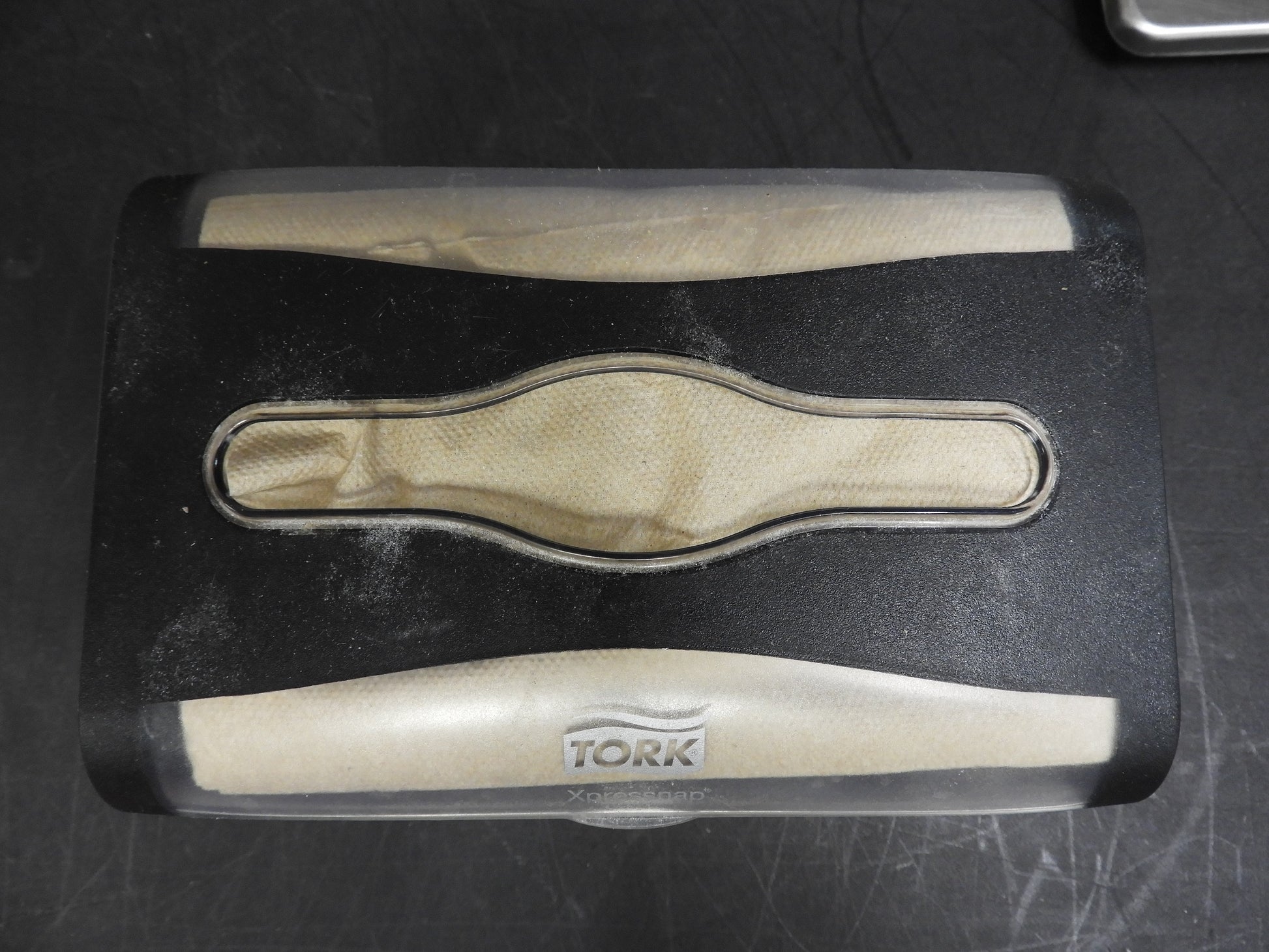 Used Tork Xpressnap Tabletop Napkin Dispenser, 7.9"W x 5.9"D x 6.1"H, Black