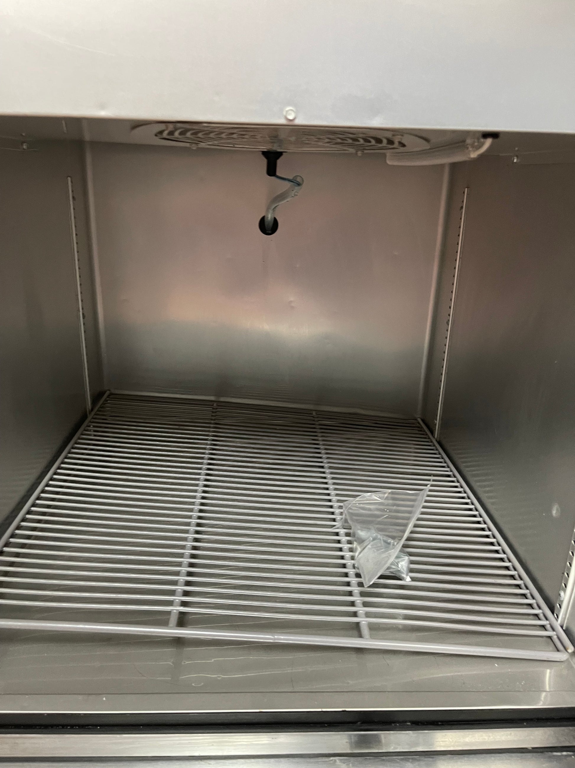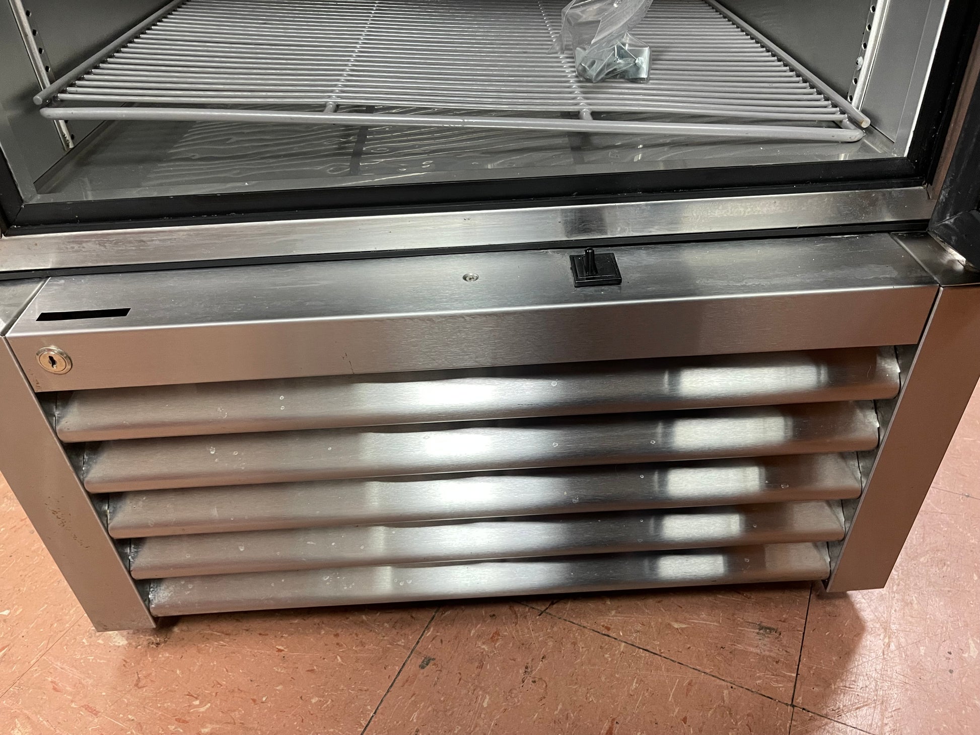 Each interior section of the T-23DT-HC refrigerator freezer is lined with clear-coat aluminum. The floor of each is made of stainless steel with coved corners, and the entire unit is NSF/ANSI Standard 7 compliant to hold open foods. Providing visibility, each section has LED interior lights, Both doors are hinged on the left to open on the right.