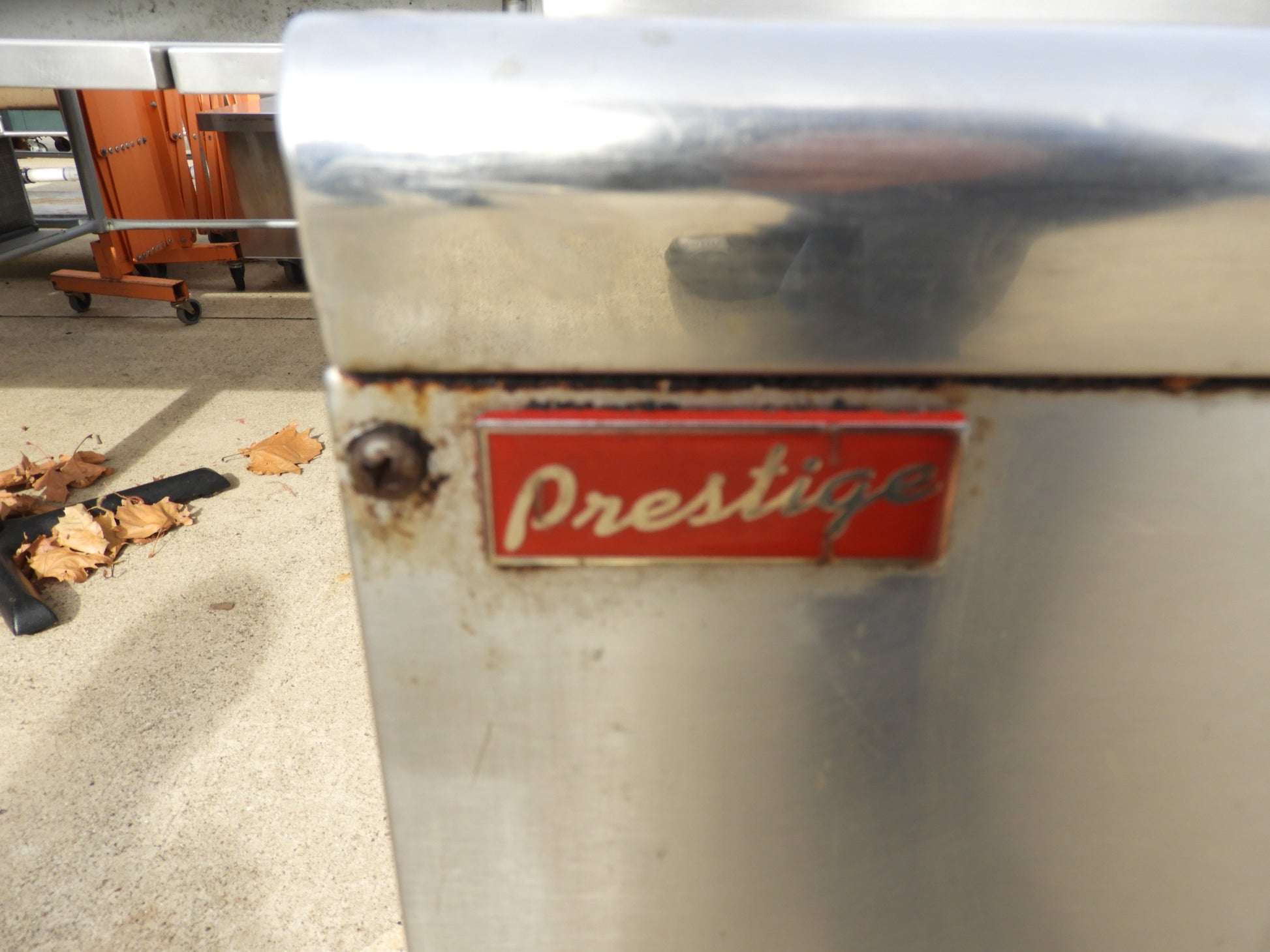 This sink is used but is in good usable condition. One of the drains have been repaired with weld (see pictures). This does have some scuffs and scratches on it from use. The dimensions are 84"x24.5"x36.5" and the bowls are 14"x10"x9.5".